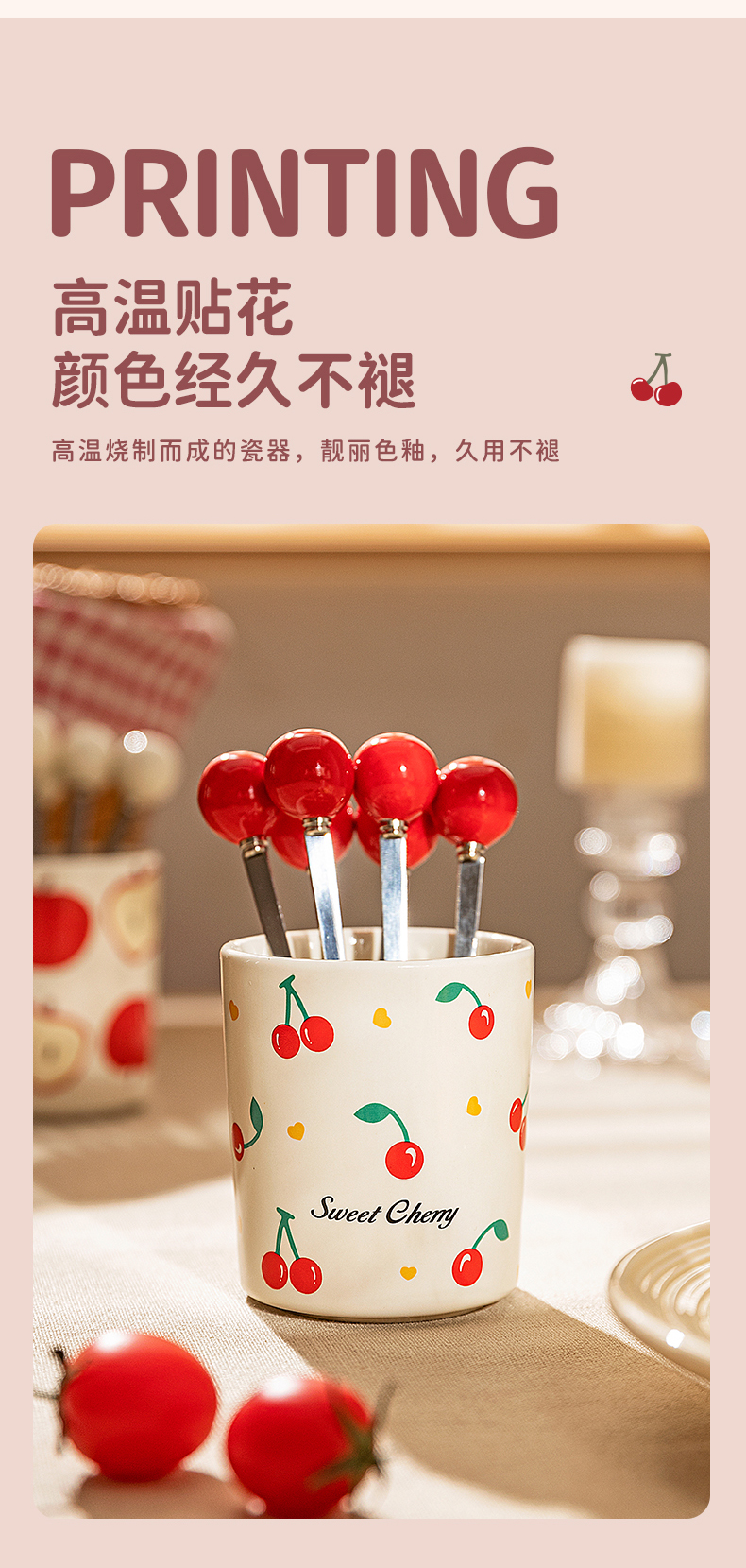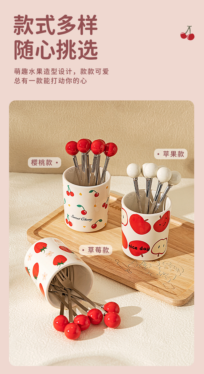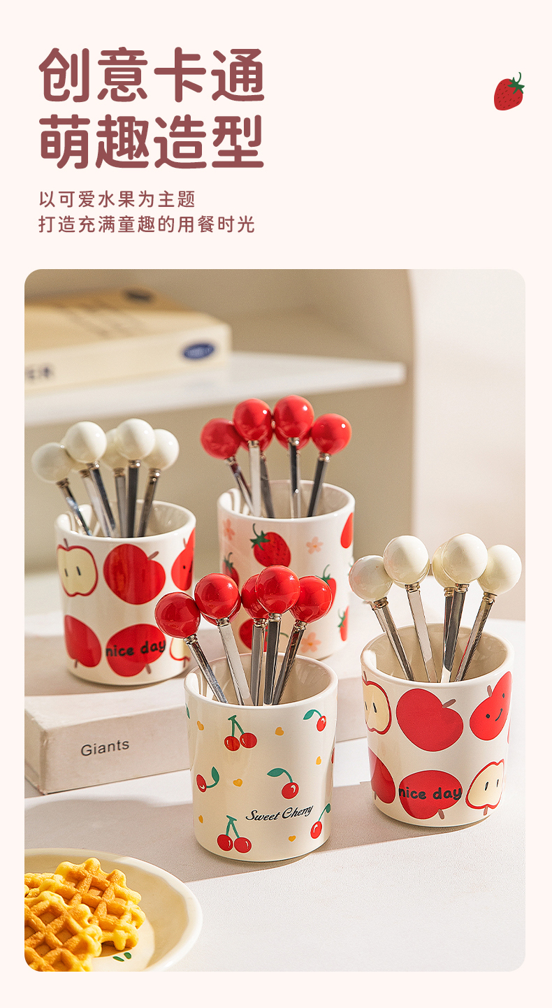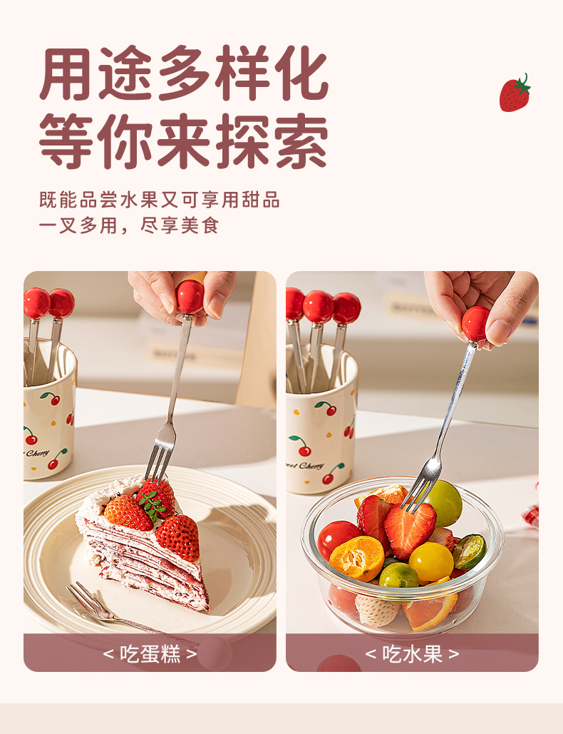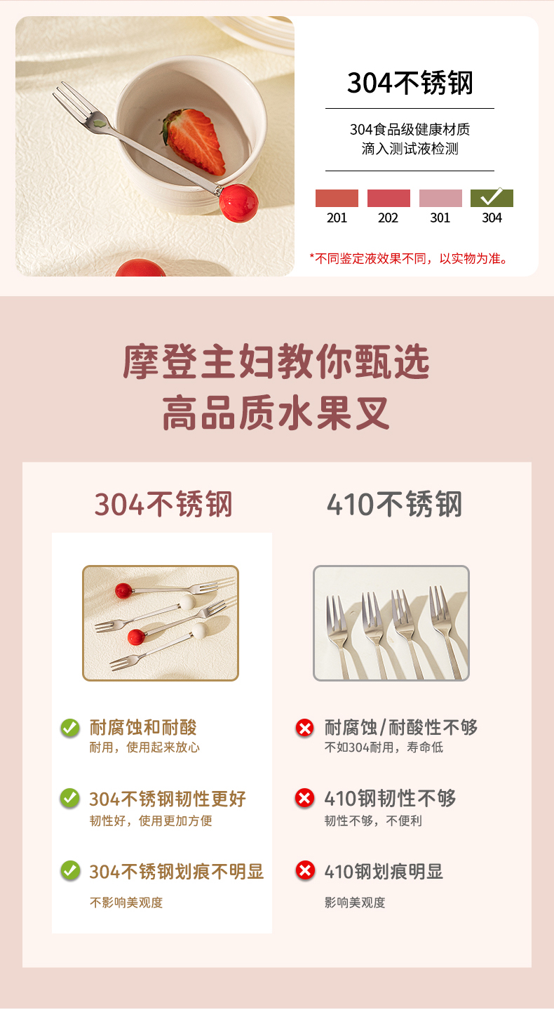 摩登主妇水果叉子不锈钢水果签收纳罐轻奢高级感餐叉甜品蛋糕叉子