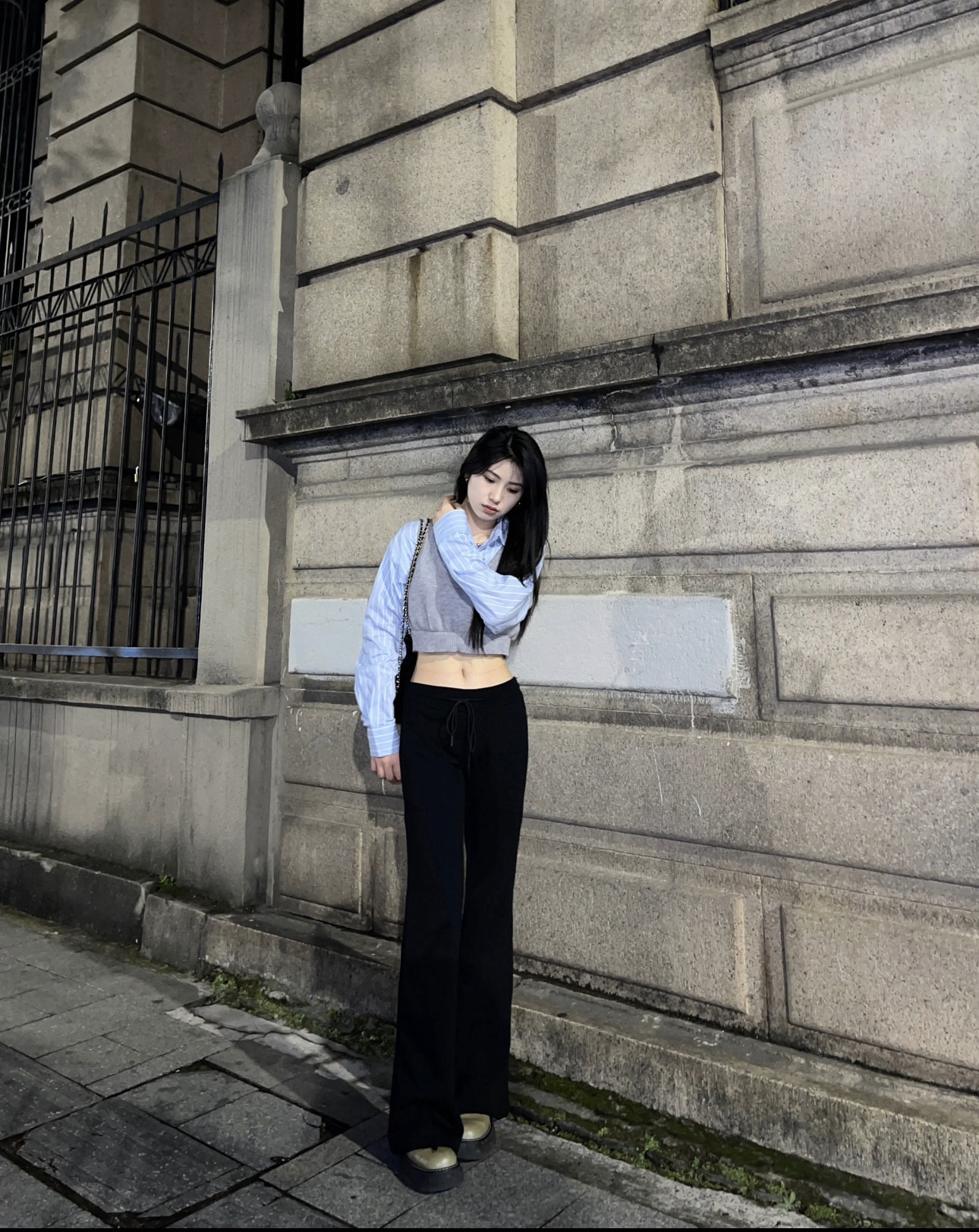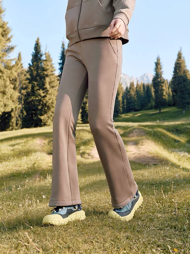 采用棉与聚酯纤维精纺的针织面料 云朵般柔软细腻的触感 亲肤舒适 且带有四面弹力,上身轻盈无负重感,内里的抓绒处理 有效锁温保暖!整体的喇叭裤型裁剪自带高级垂坠感,上窄下宽的设计一秒修饰腿部肉肉,轻松修饰腿弯腿粗等问题,上身视觉拉伸腿部线条优化比例 非常显瘦显气质 妥妥大长腿系列~简约百搭 完全不挑年龄不挑人,日常休闲 通勤商务或逛街出行皆可穿,搭配同系列外套 穿搭效果会更时髦洋气!