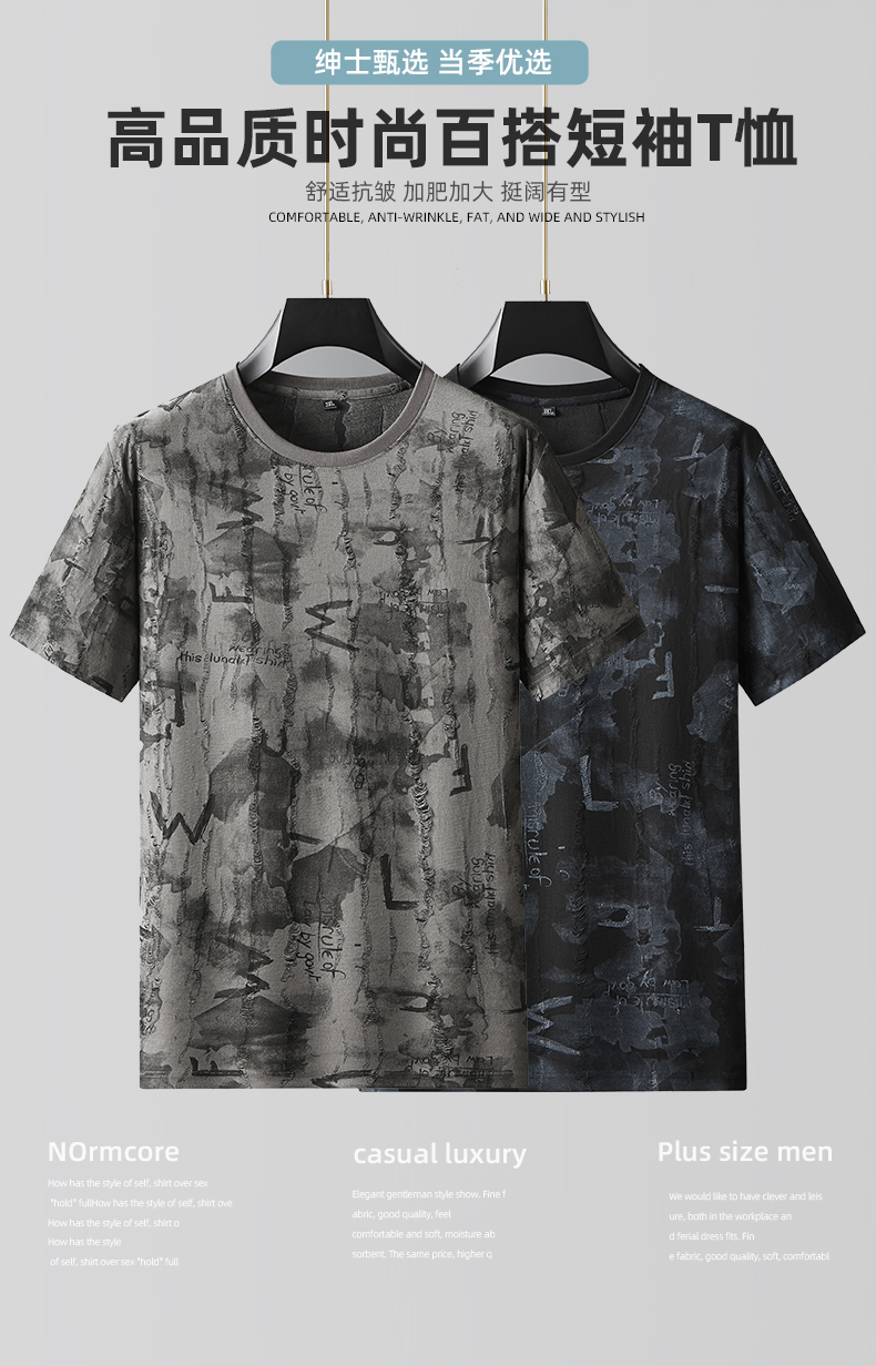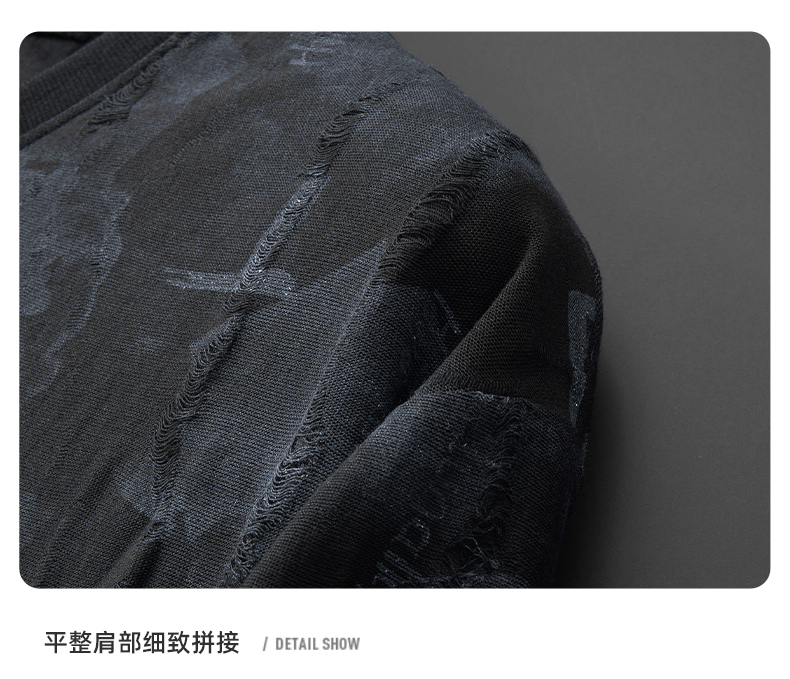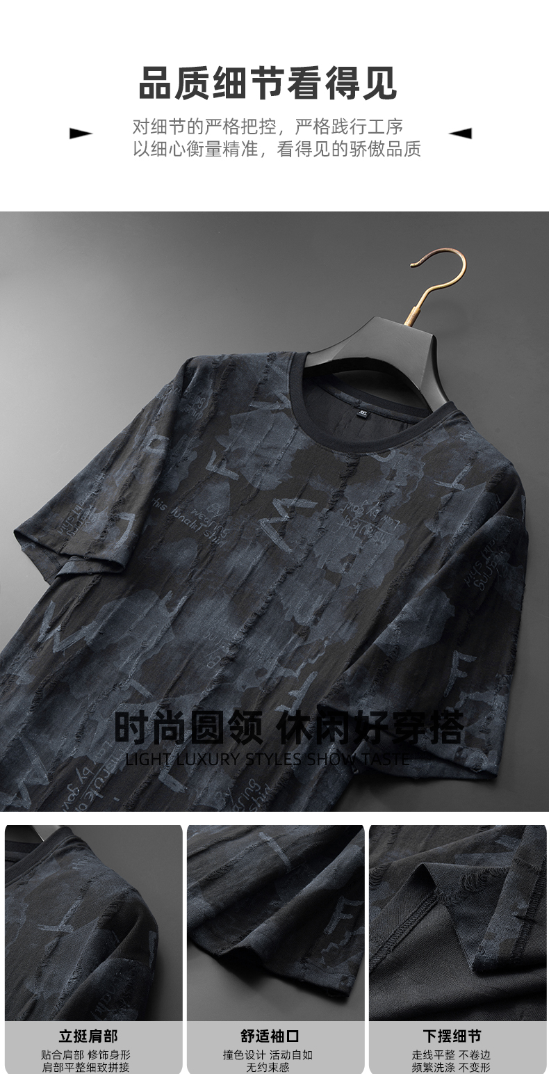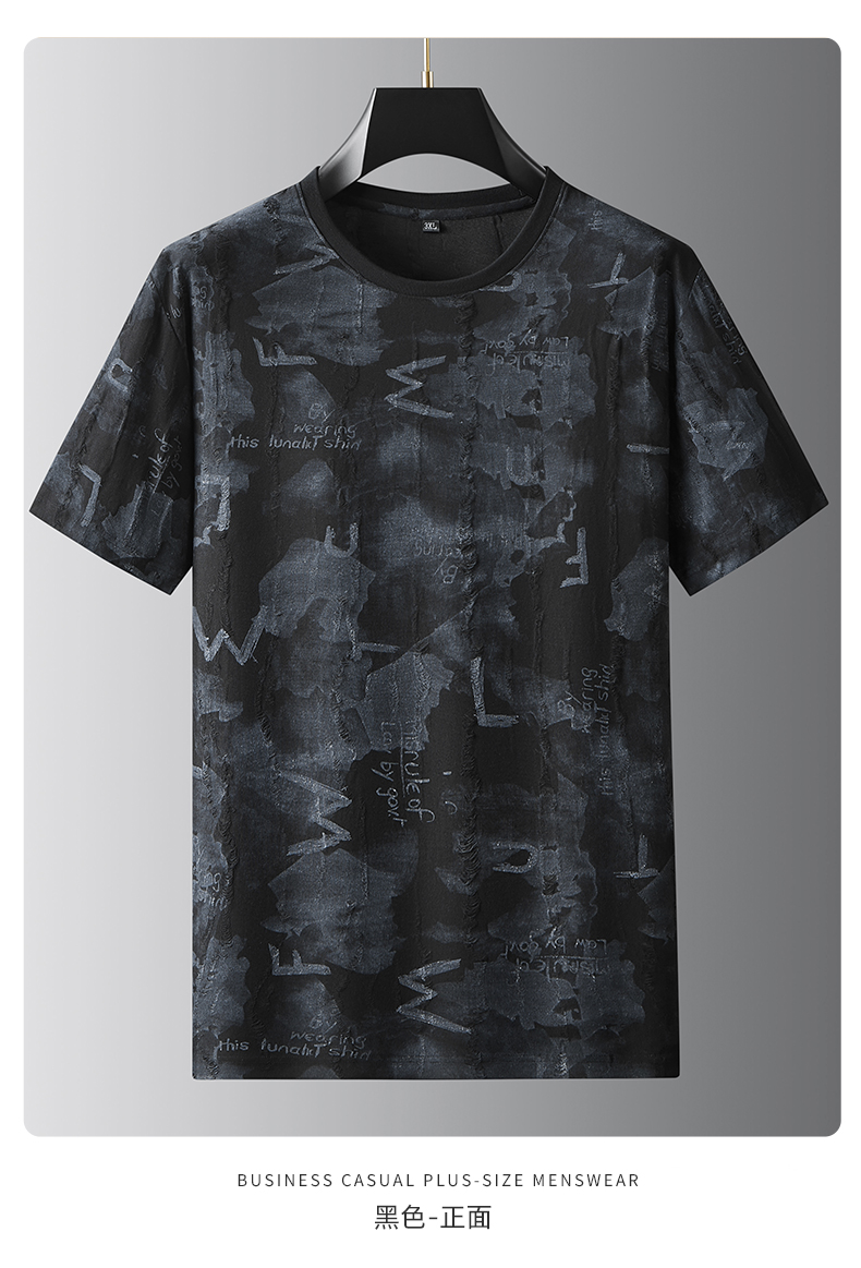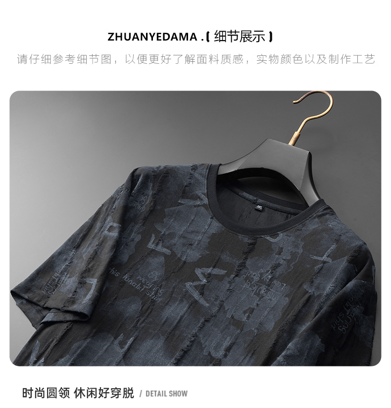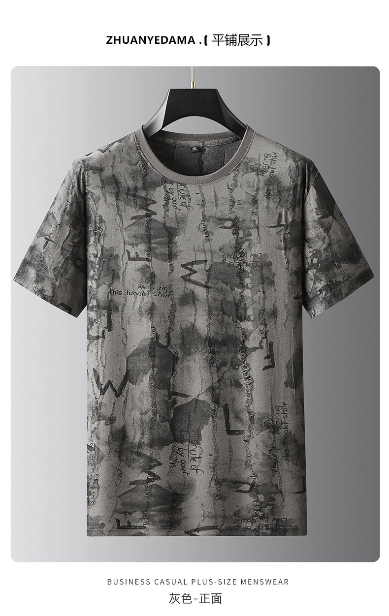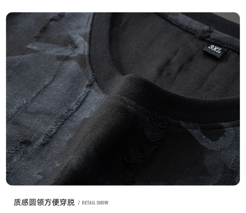 【DDA】大依优型大码短袖T恤破洞夏季圆领半袖加肥加大码短袖上衣胖子男士潮流