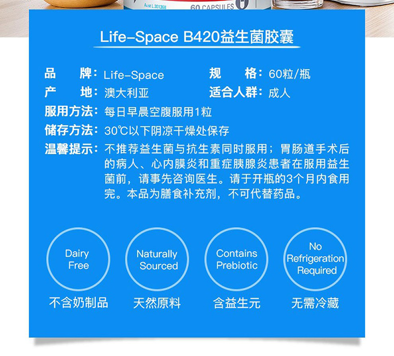 【跨境】澳洲LifeSpace 益倍适益生菌b420 60粒/瓶