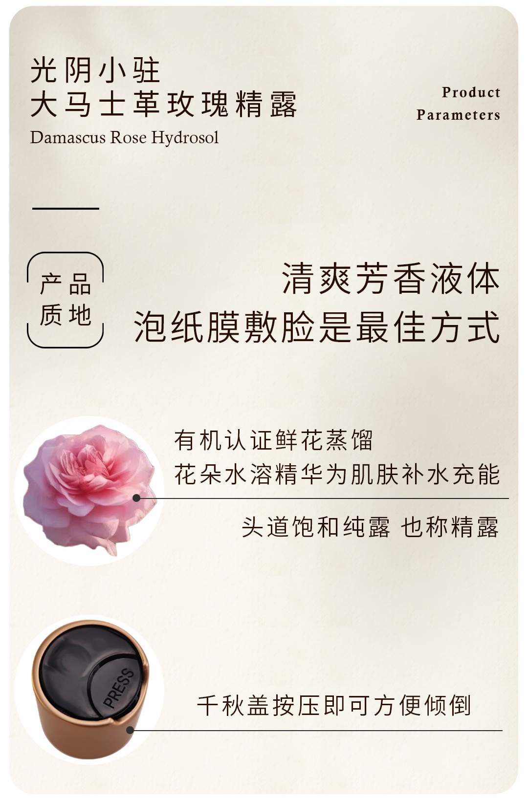 S光阴小驻有机种植大马士革玫瑰精露 买大送小 头道饱和纯露 补水面膜 细嫩肌肤