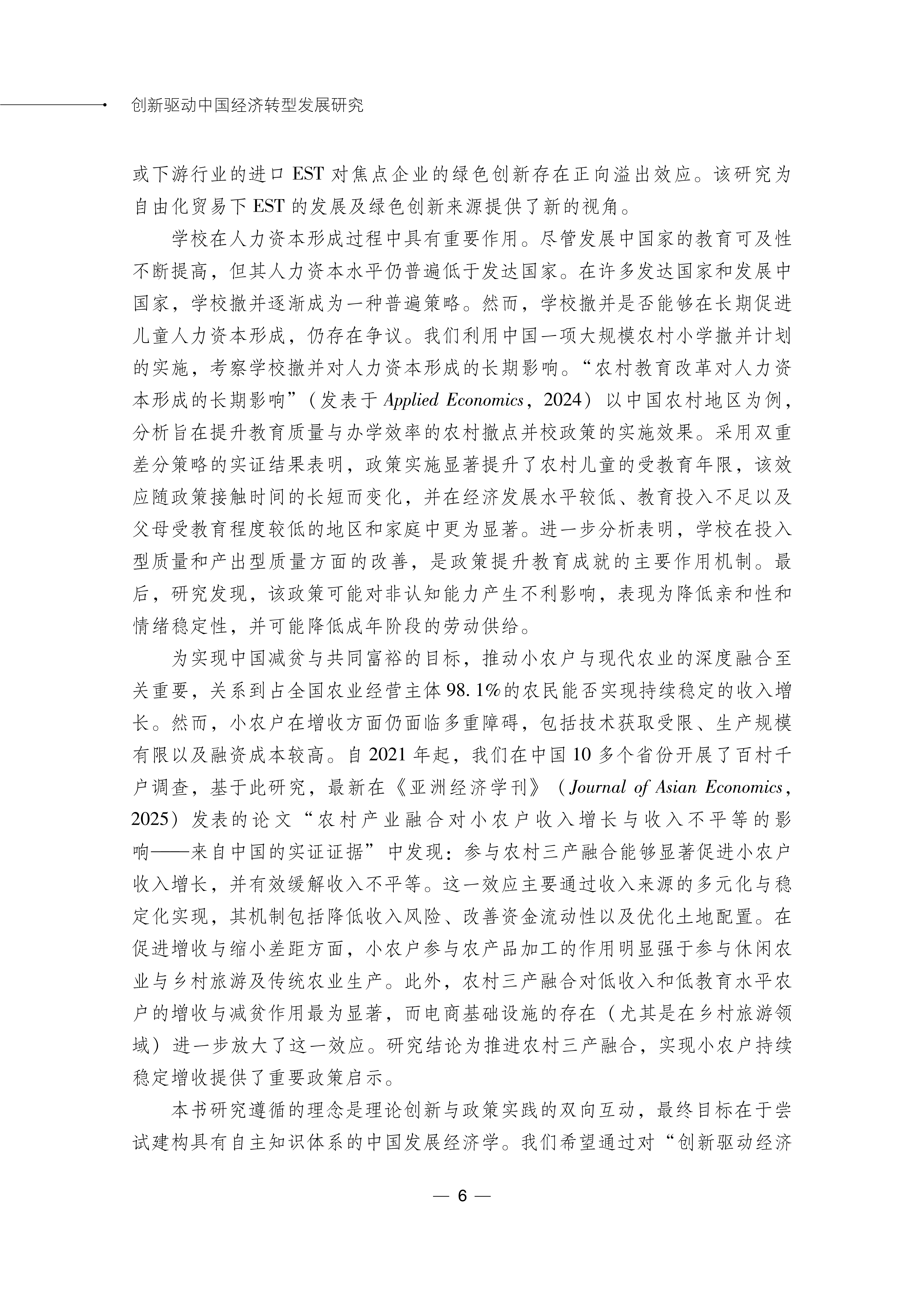 张建华教授等著的《创新驱动中国经济转型发展研究》,从不同侧面展示了作者对中国经济问题的思考。全书形成了一条清晰的研究脉落,即中国进入以服务业为主,跨越中等收入陷阱、进阶高收入经济体之后一系列理论和实践问题。该书重点对经济转型、产业结构变迁、贸易与绿色发展等方面进行了系统研究,研究方法和研究结论均具有较高的借鉴和参考价值。尤其该书从我国从全面小康走向共同富裕的历史变革,提出了基于中国实践的中国发展经济学理论创新命题,对构建中国自主知识体系具有建设性意义。