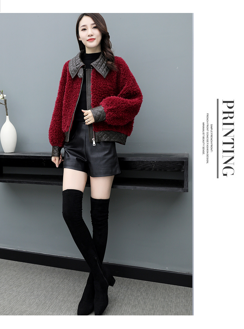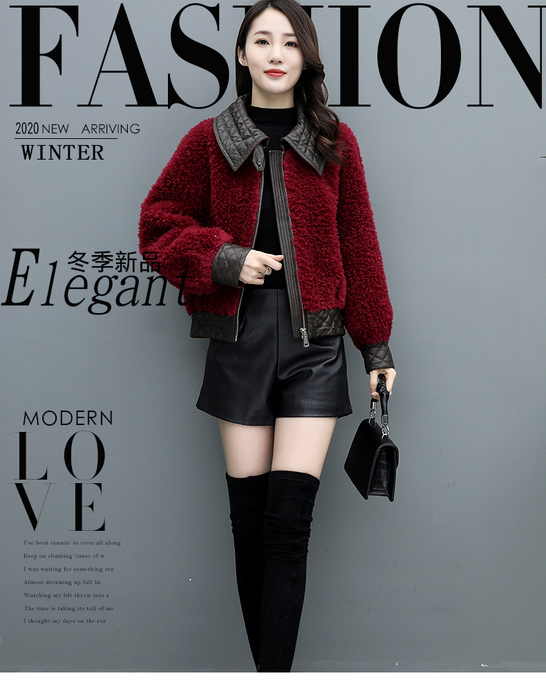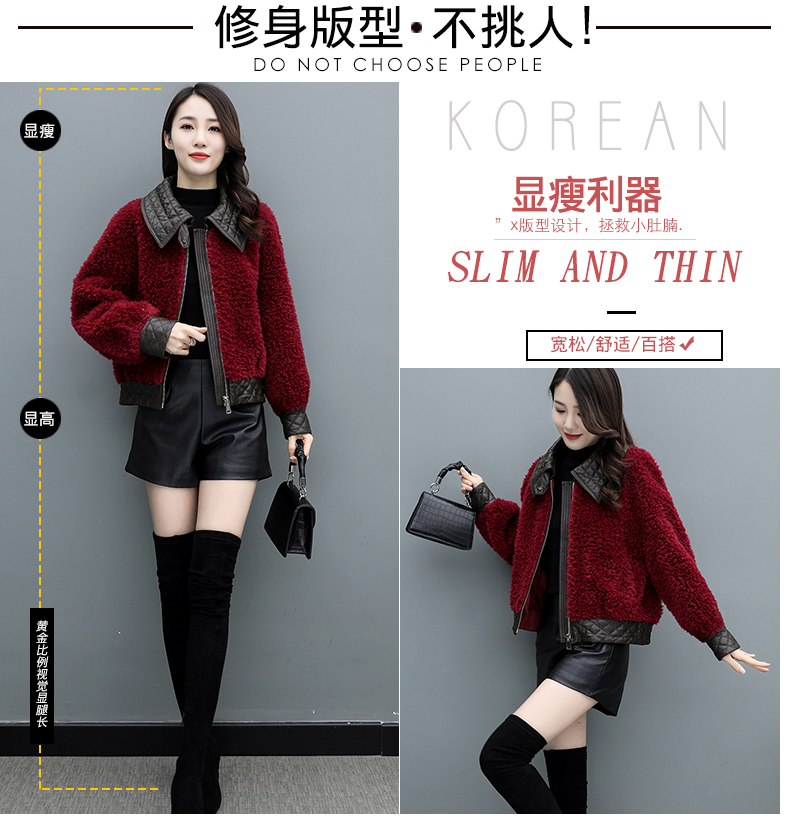 新款皮毛一体显瘦羊羔毛加厚短外套女 RWQ9865
