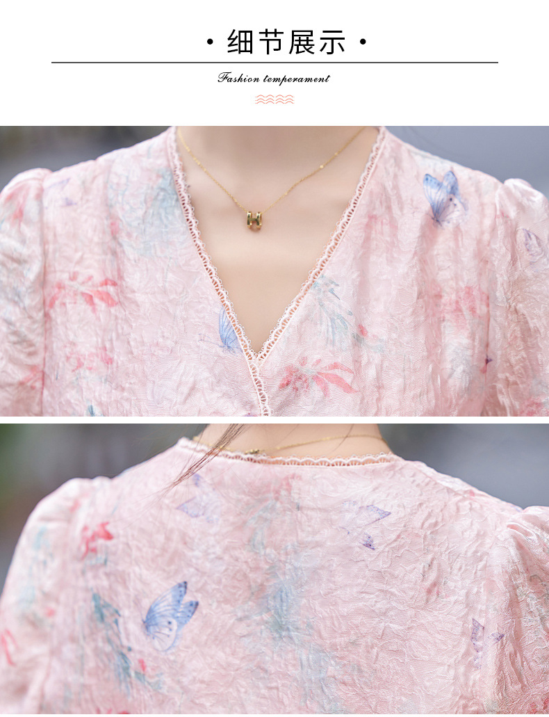 V领荷叶边洋气修身,显瘦丝绒长袖小衫KQL-2365
