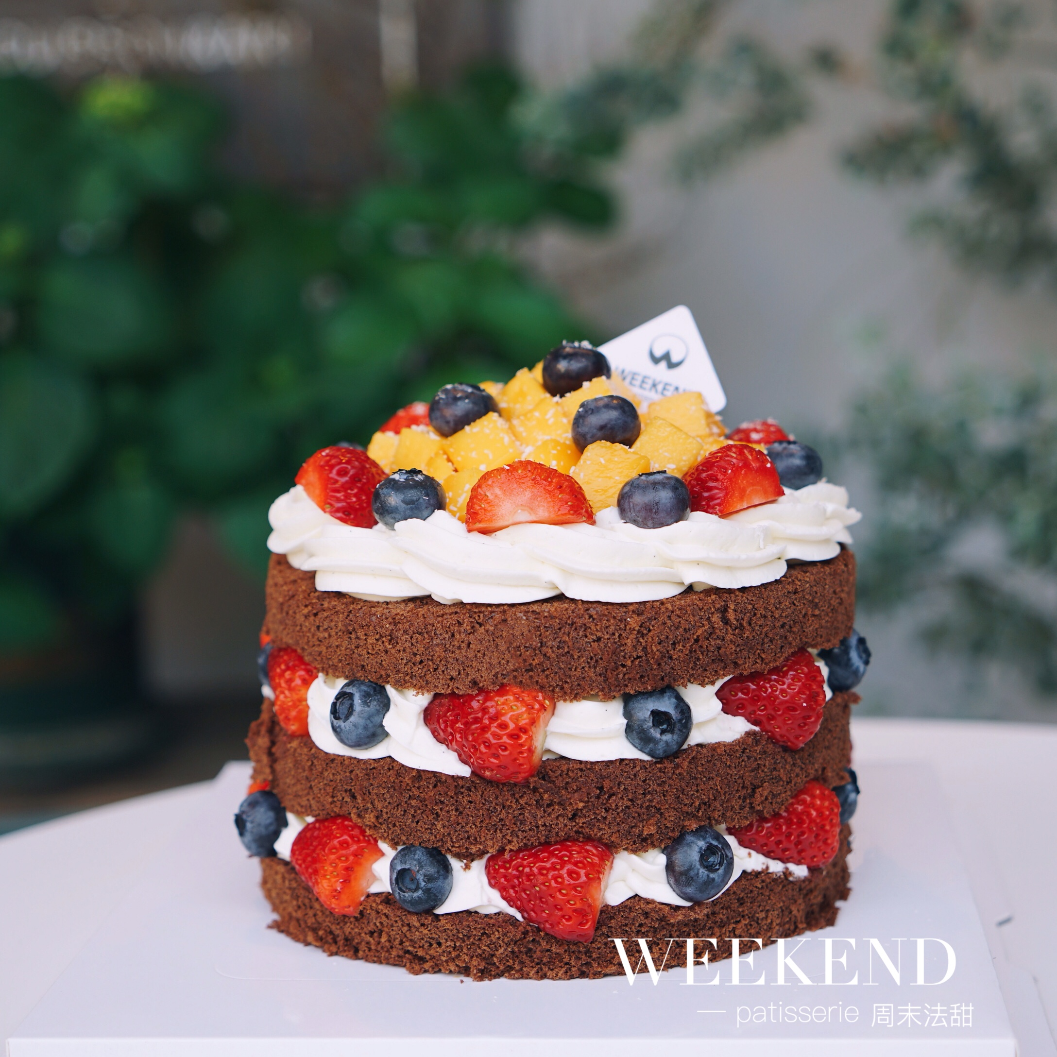 可可胚蛋糕立面不抹奶油,用新鲜水果点缀,更能突出蛋糕自然状态的美~