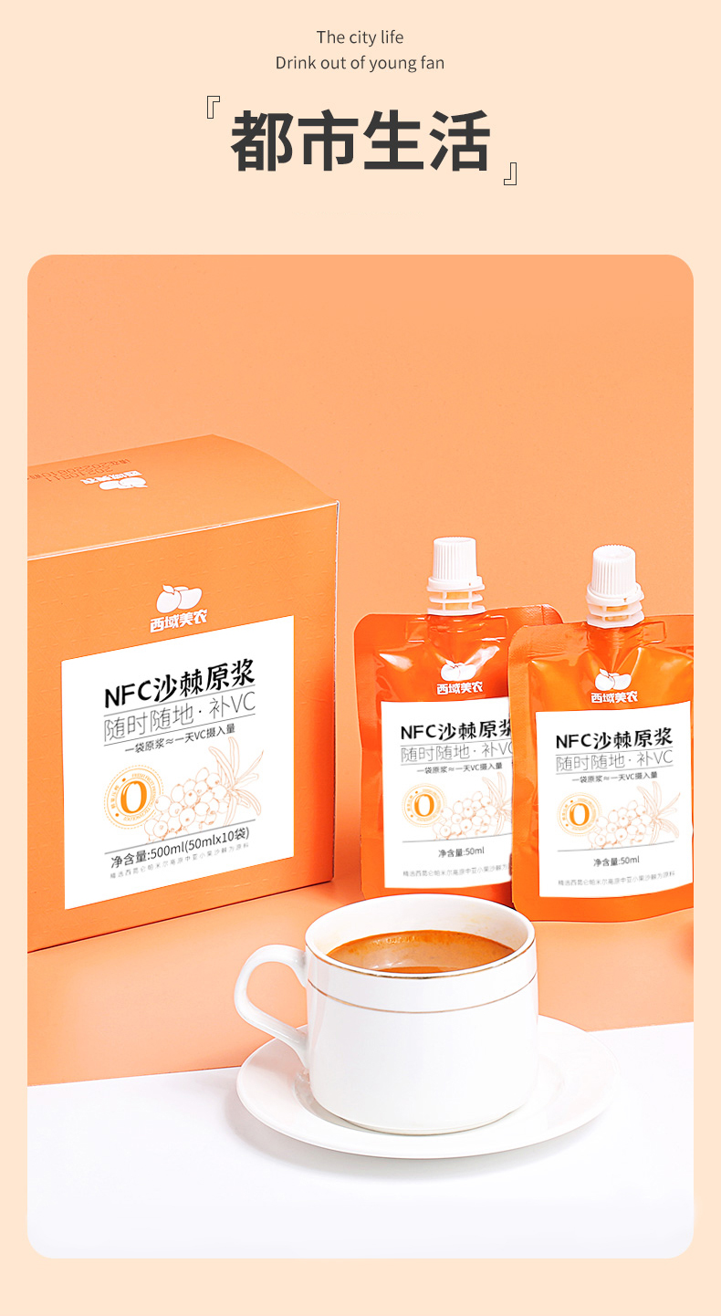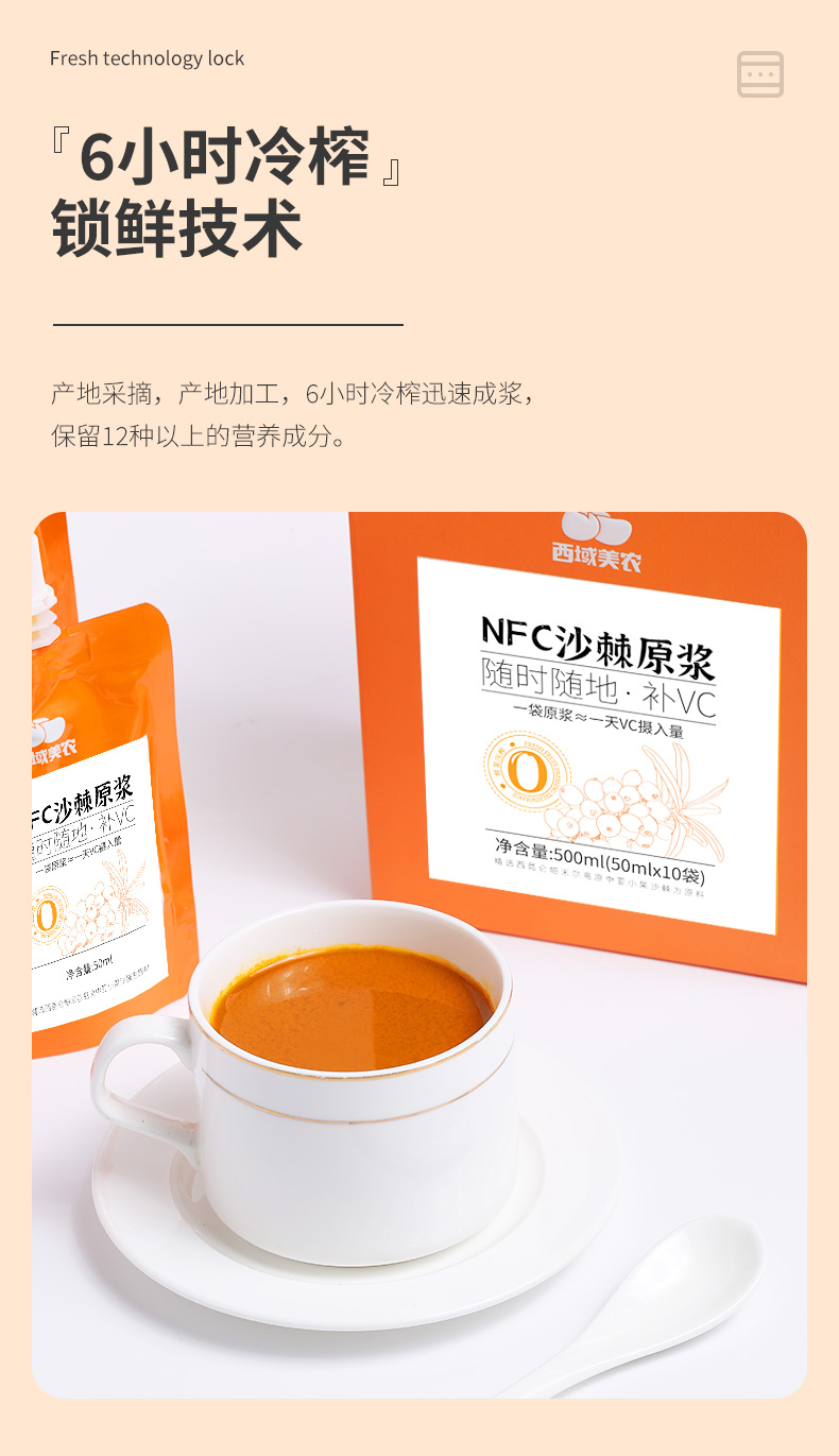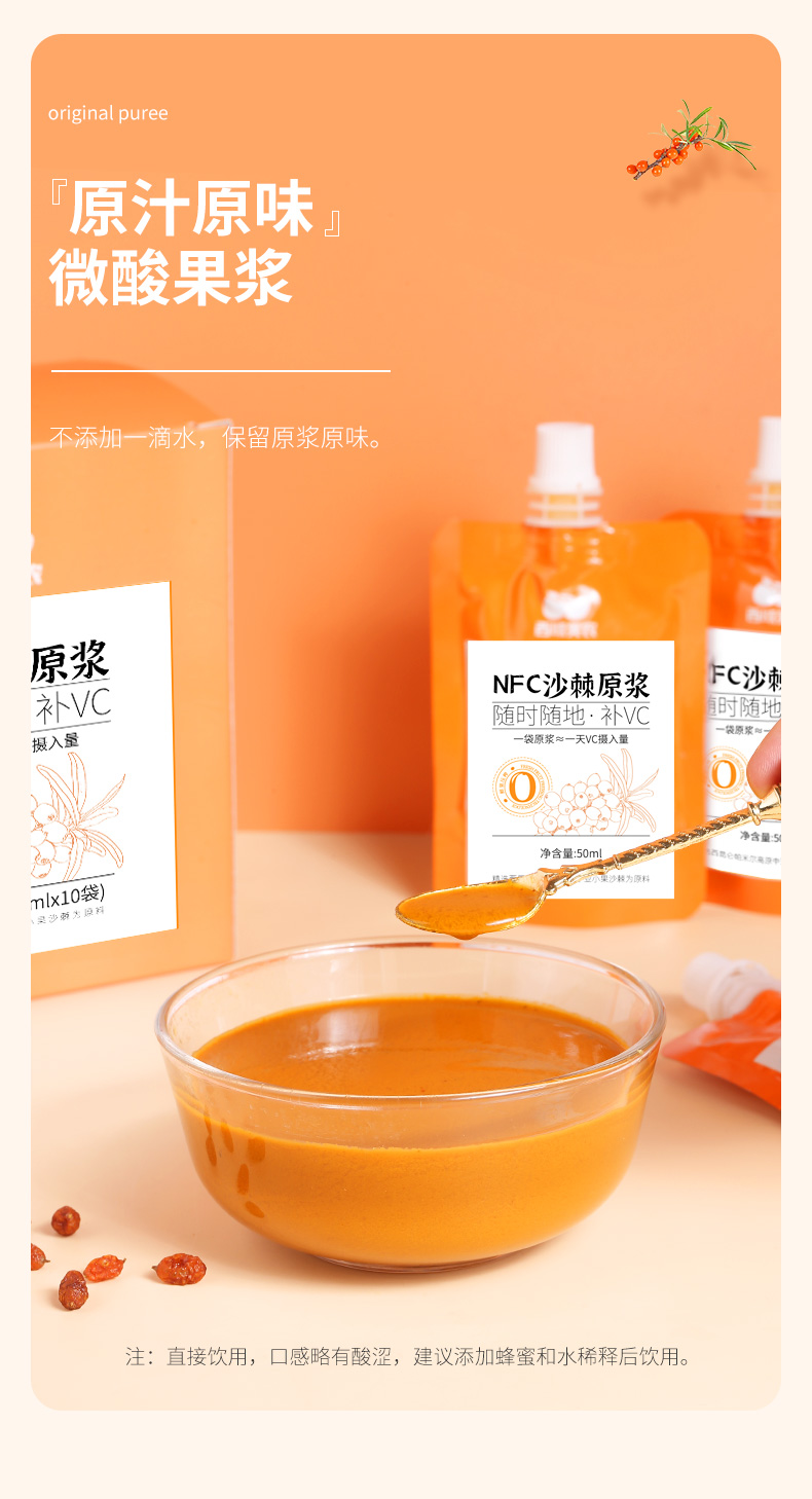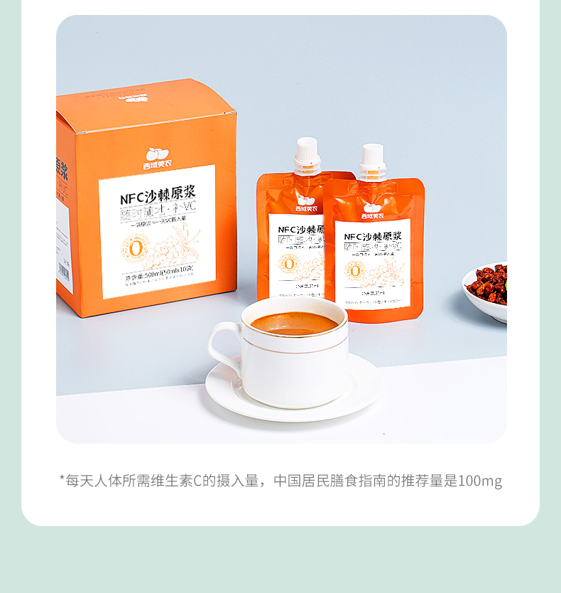 【最后2天!买9送2,下次等明年!】西域美农新疆沙棘原浆50ml*10袋 沙棘汁原浆