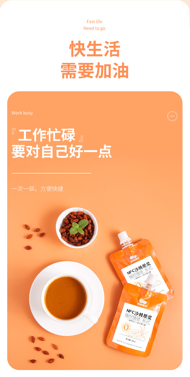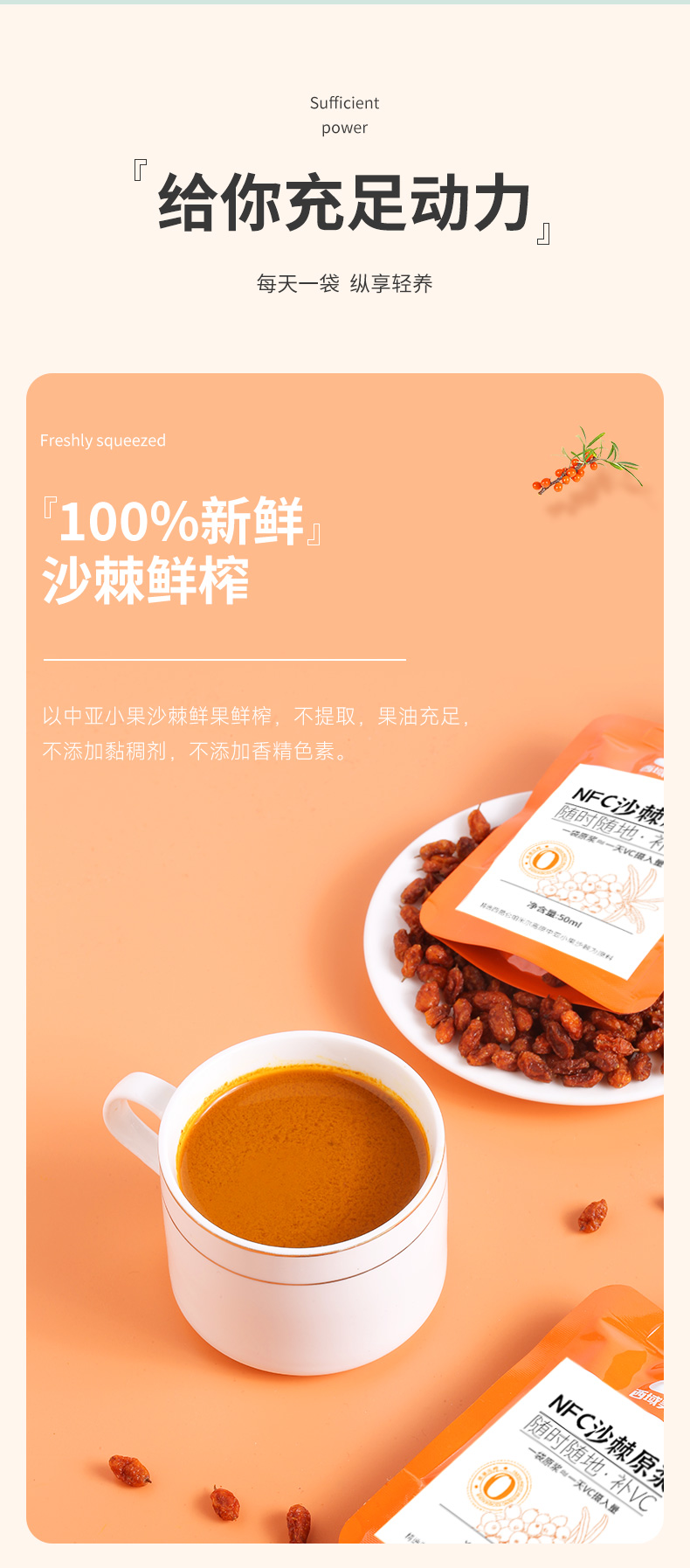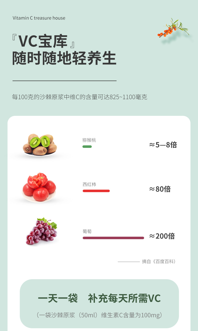 【最后2天!买9送2,下次等明年!】西域美农新疆沙棘原浆50ml*10袋 沙棘汁原浆