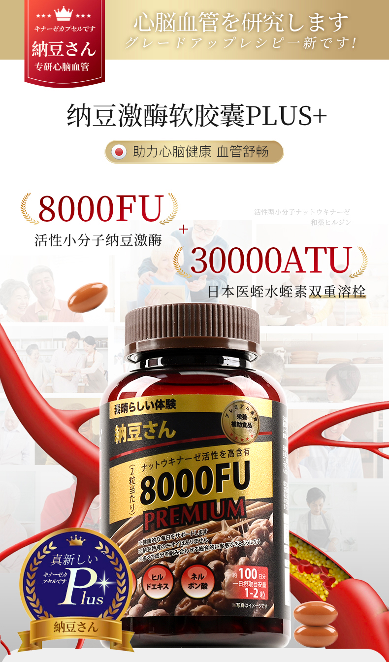 【血管“清道夫” 】进口第四代纳豆先生纳豆激酶加强版8000FU高含量 加强黑金版 保持血管年轻 200粒/瓶