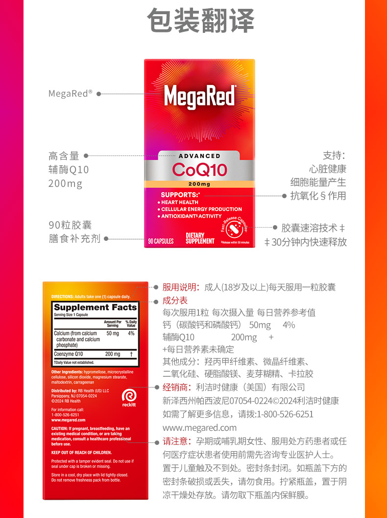 MegaRed 辅酶Q10 高浓度 200mg 90粒