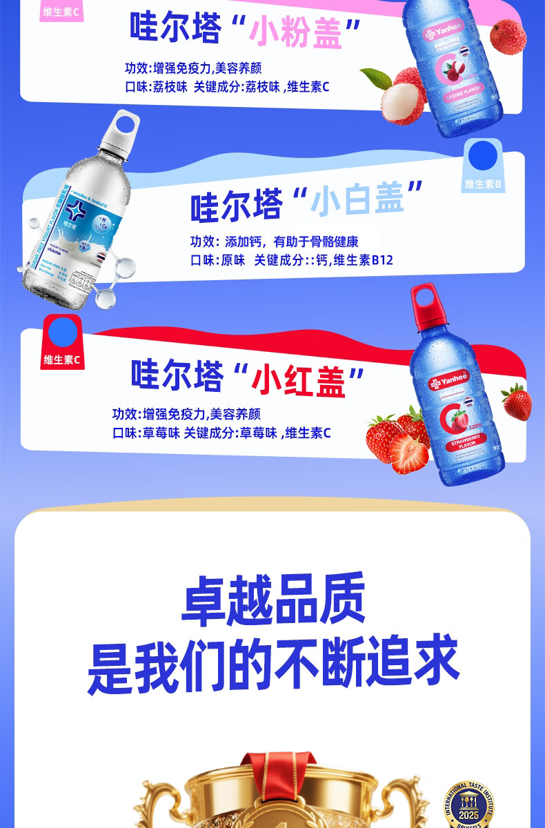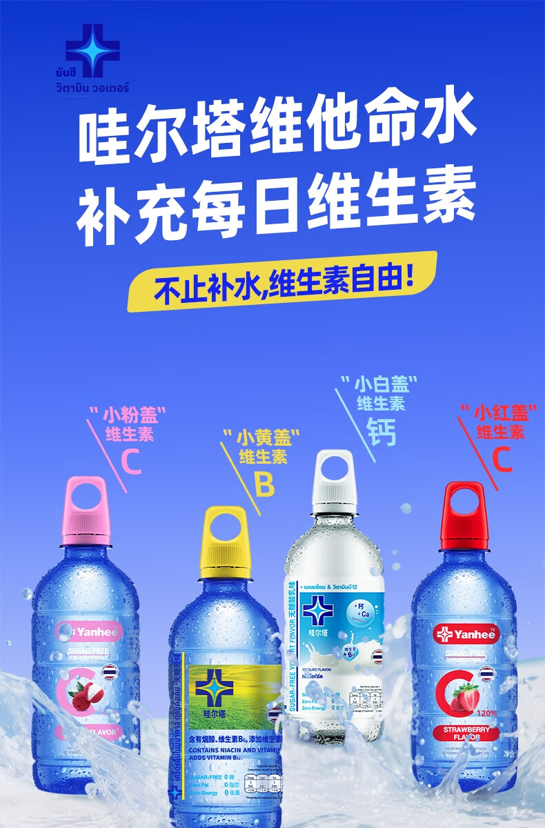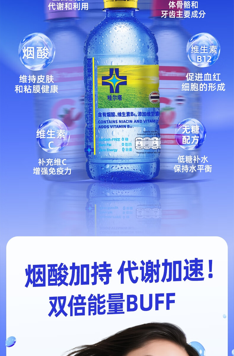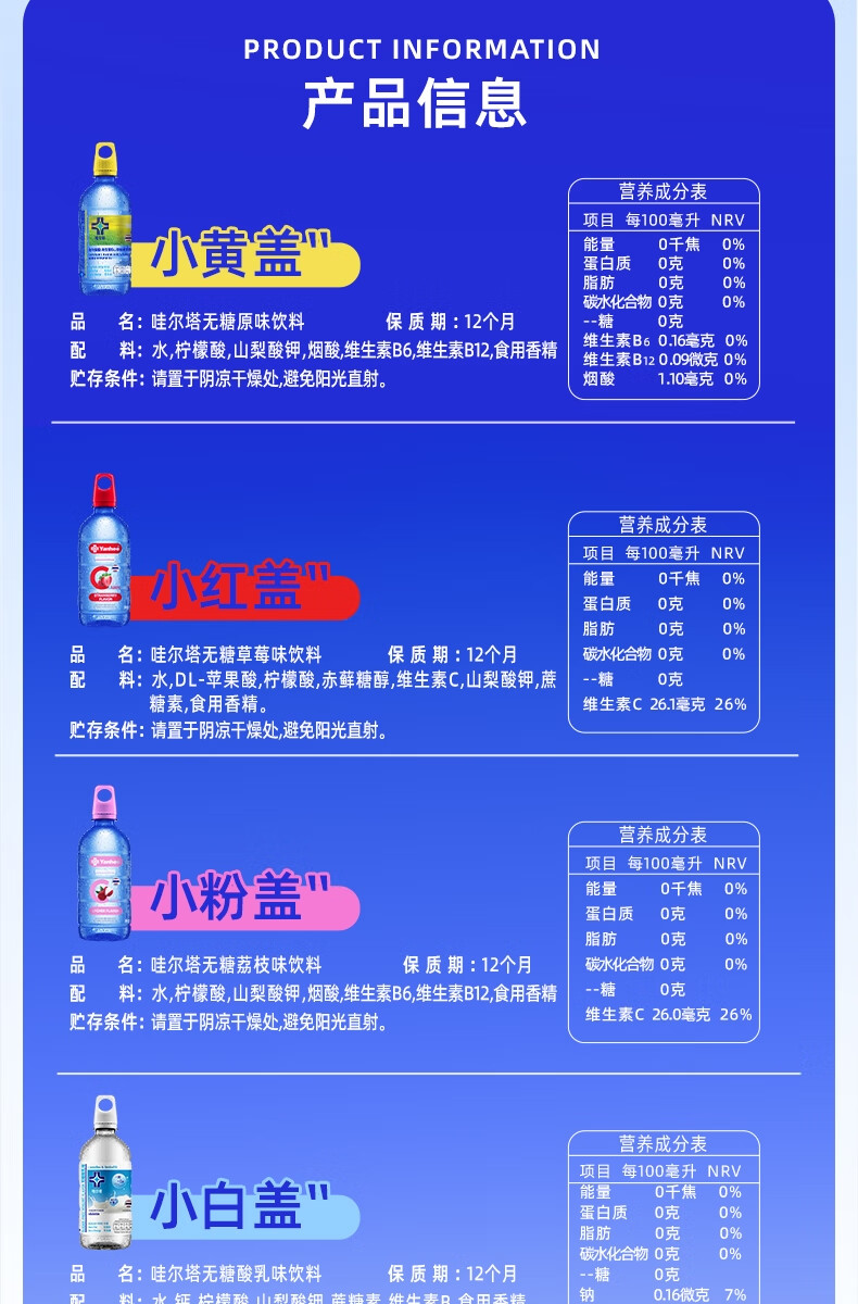哇尔塔无糖草莓味/荔枝味/酸乳味/原味饮料460ml 随时随刻都可以补充维生素 024949/024479/024951/024478