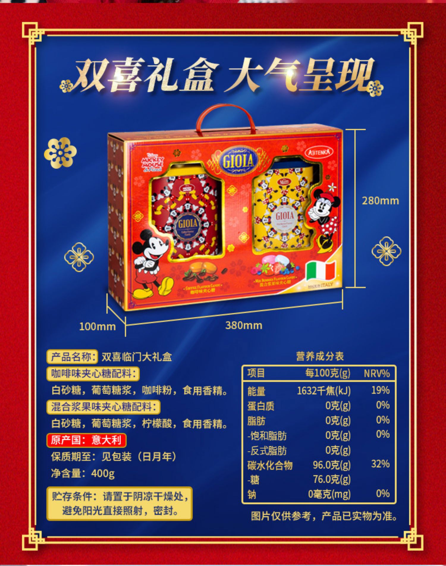 迪士尼双喜临门糖果大礼盒400g/060738 贺年礼盒携手米奇米妮开启新春之门