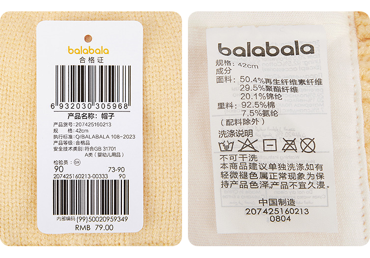 巴拉巴拉婴童帽子宝宝比尼帽保暖帽舒适玩偶萌趣可爱