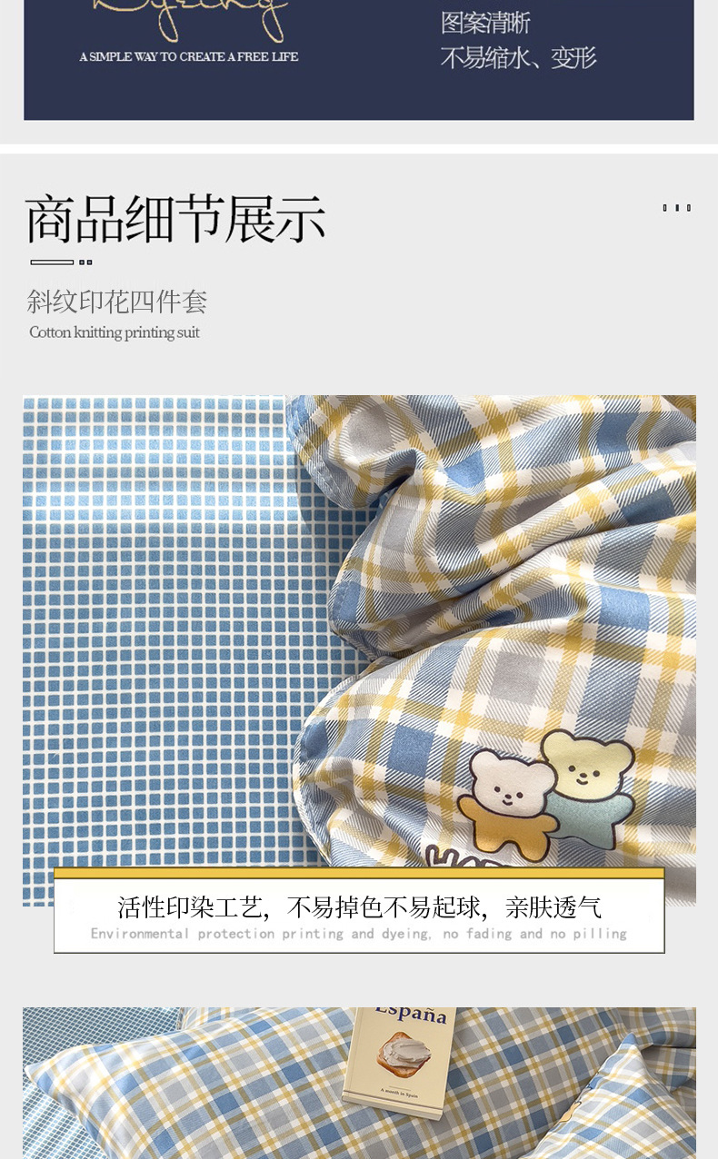 【床上用品!一套搞定】A类学生宿舍三六件套高中上下铺被套床单枕套大学生水洗棉六件套。rb