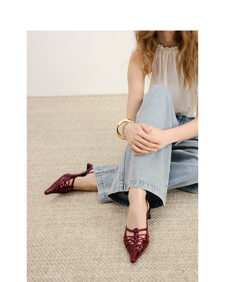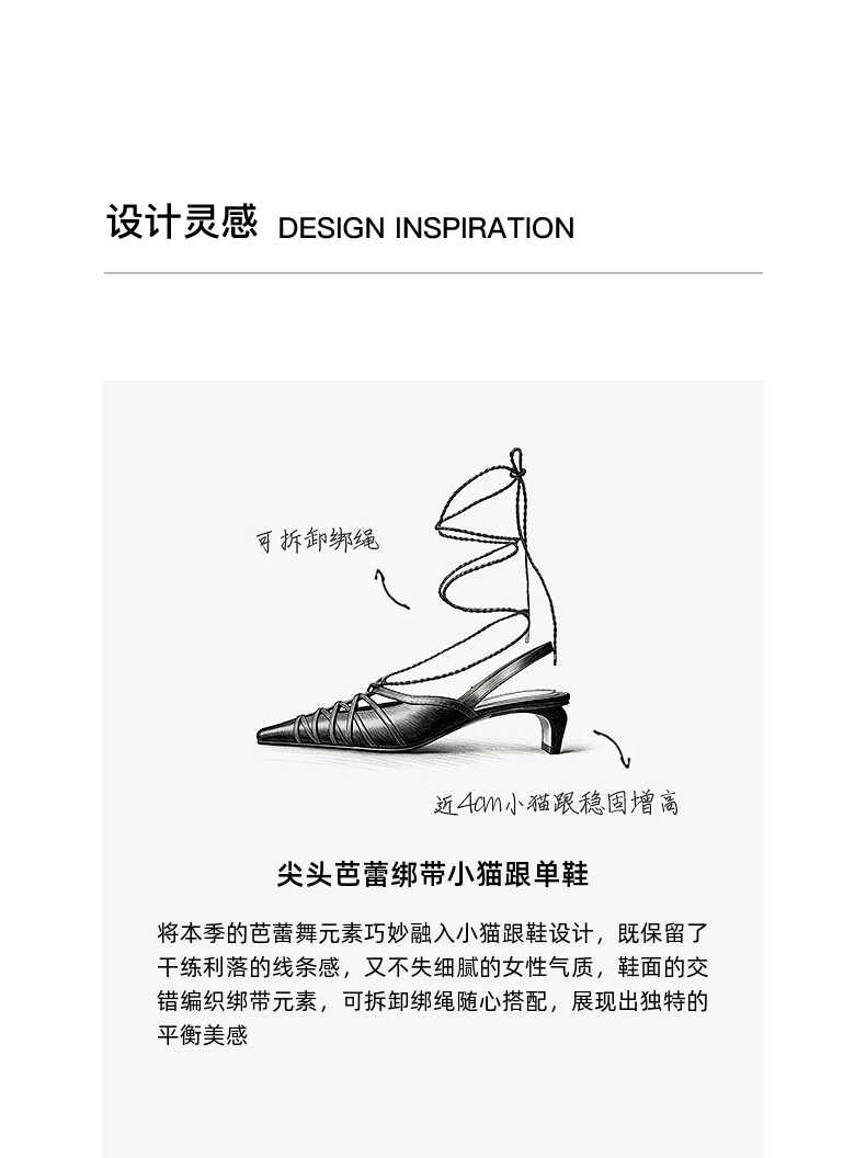 lost in echo2026春夏新款时髦摩登风尖头芭蕾绑带小猫跟高跟鞋女