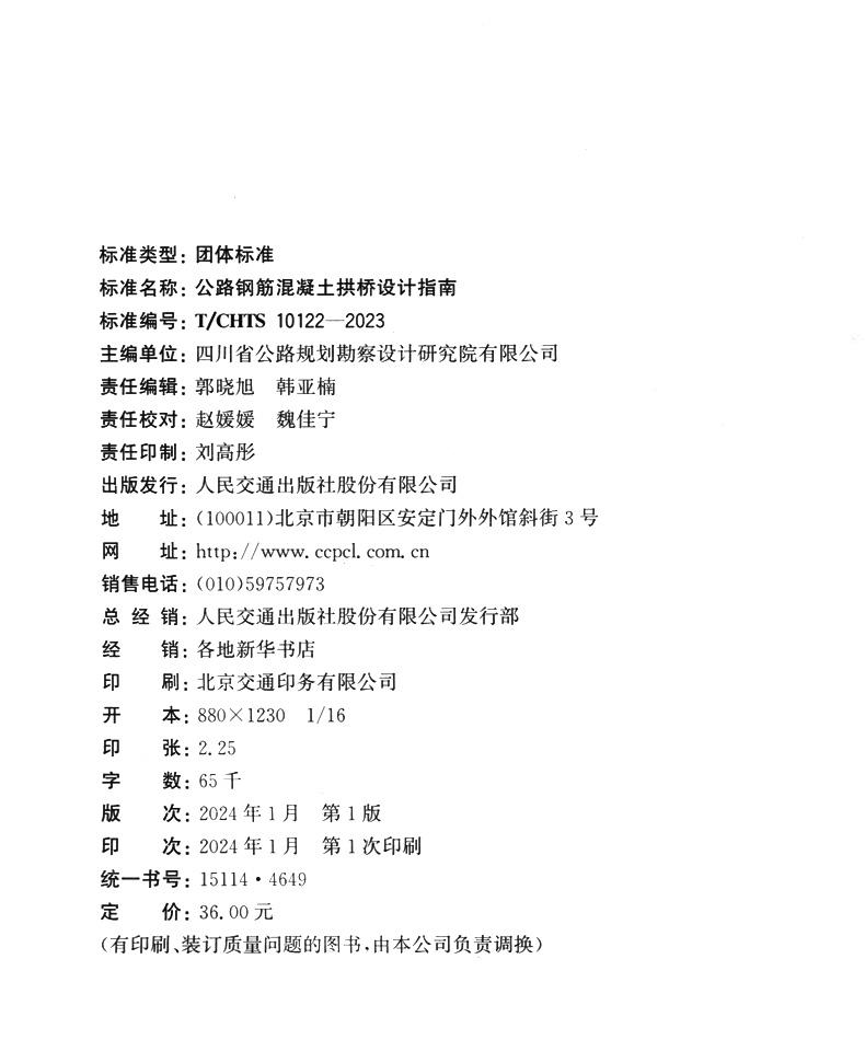 书名:公路钢筋混凝土拱桥设计指南(T/CHTS 10122—2023)