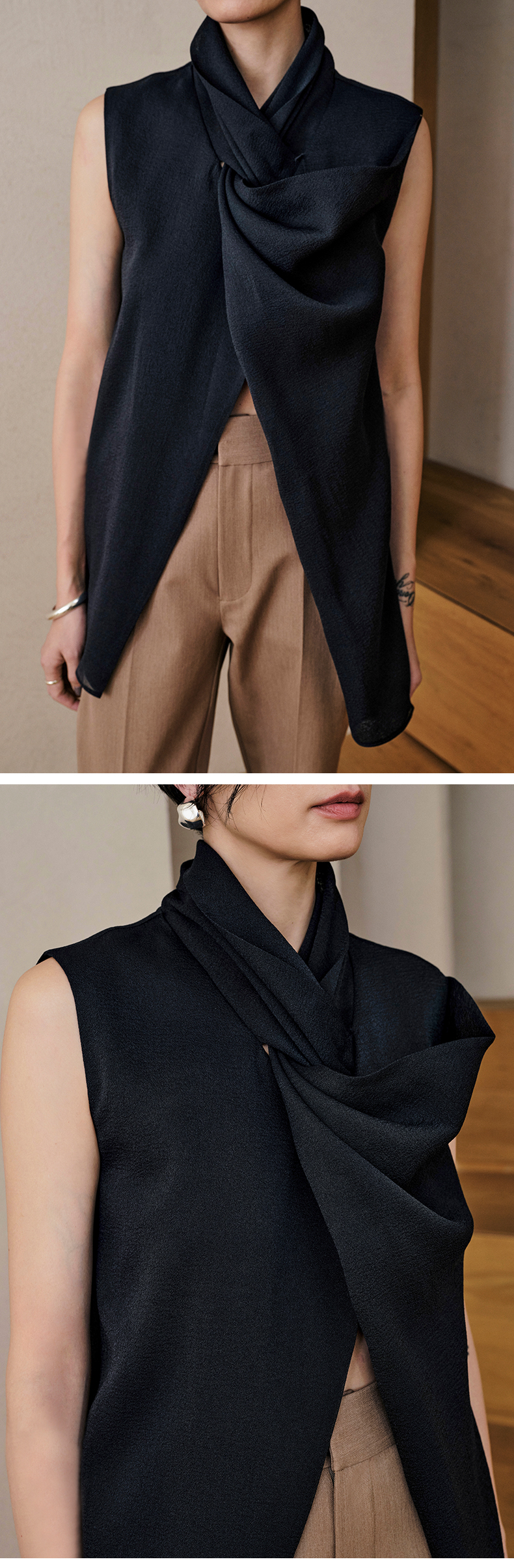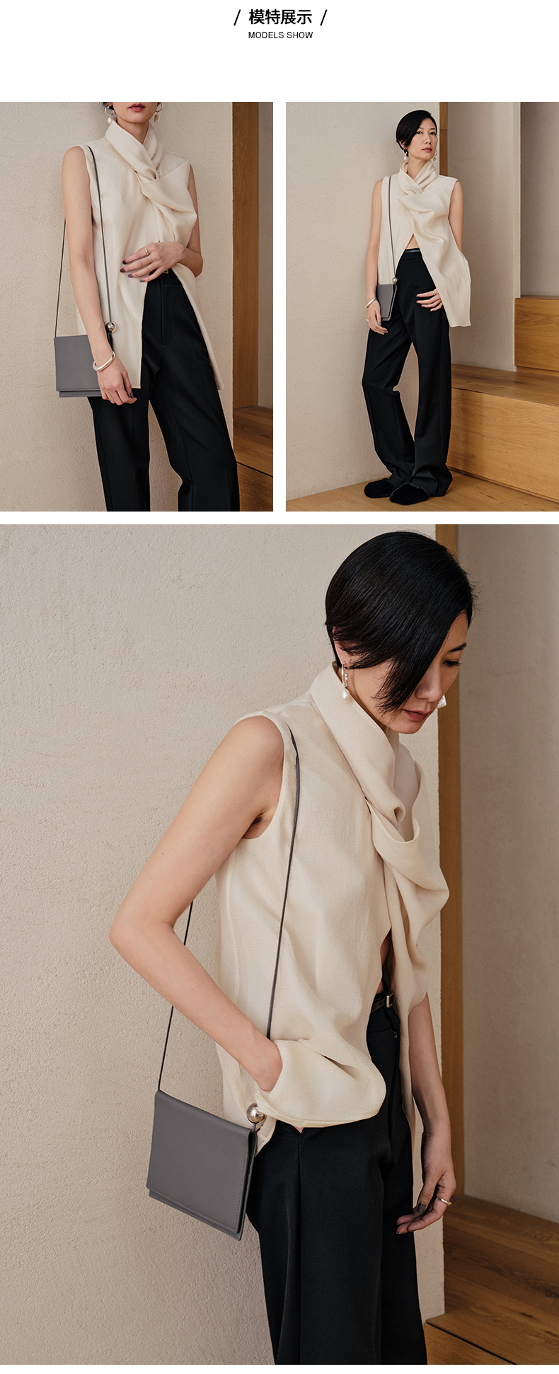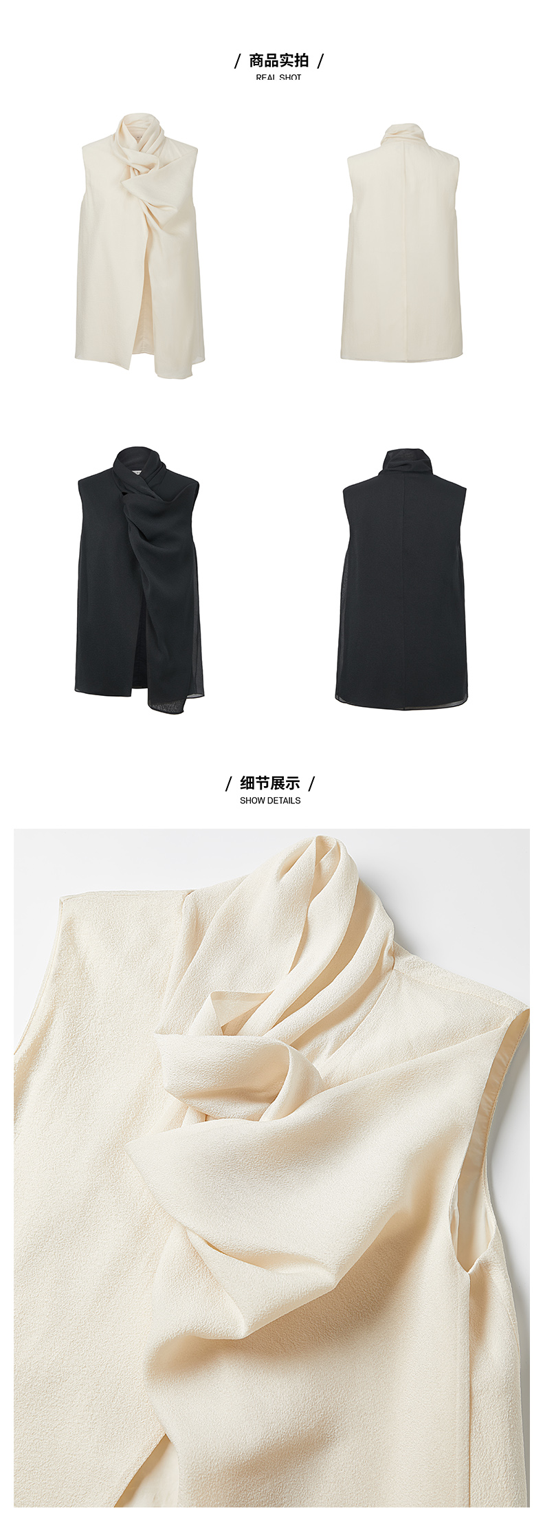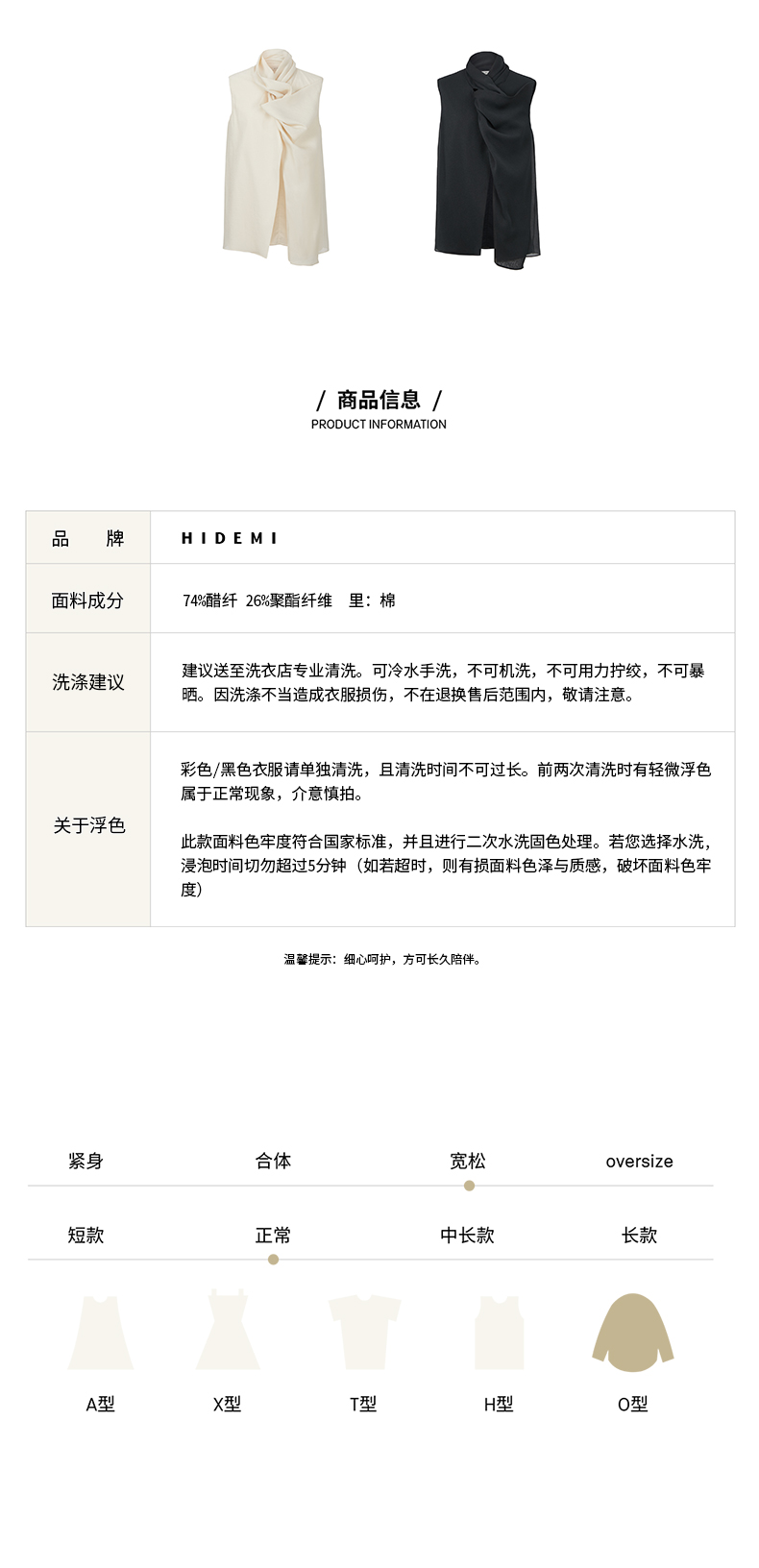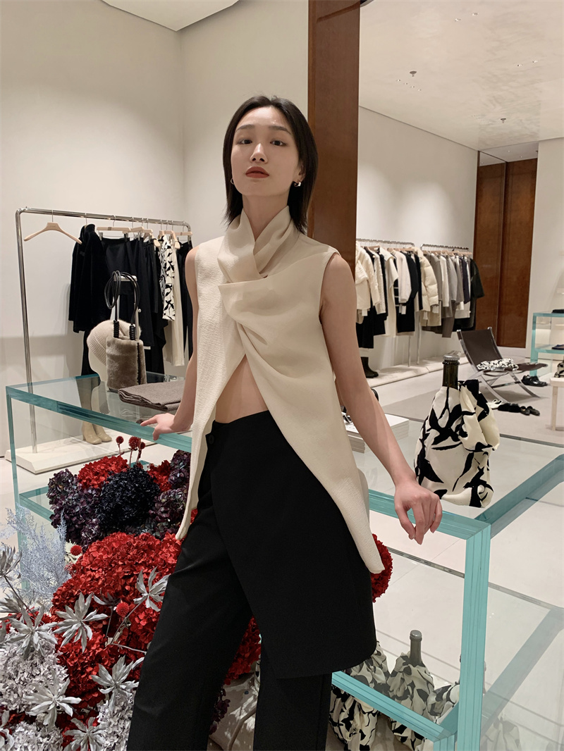 HIDEMI 微褶醋酸立体堆叠领不对称上衣