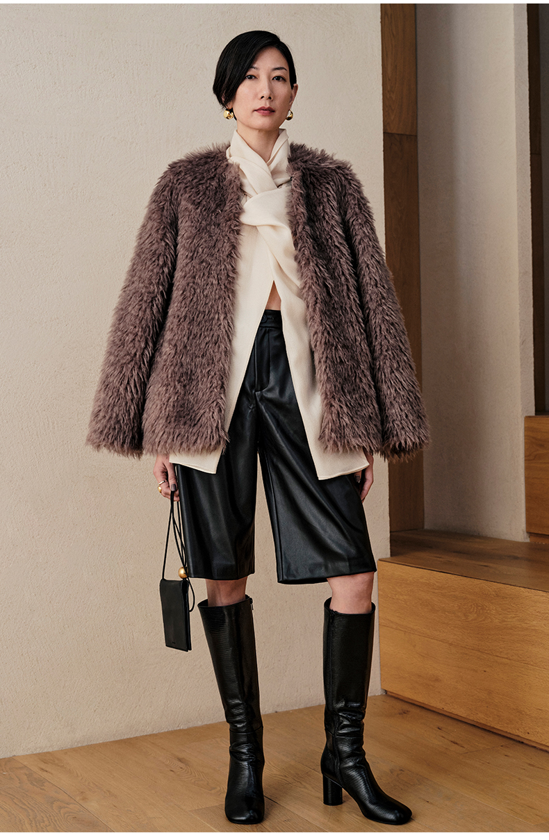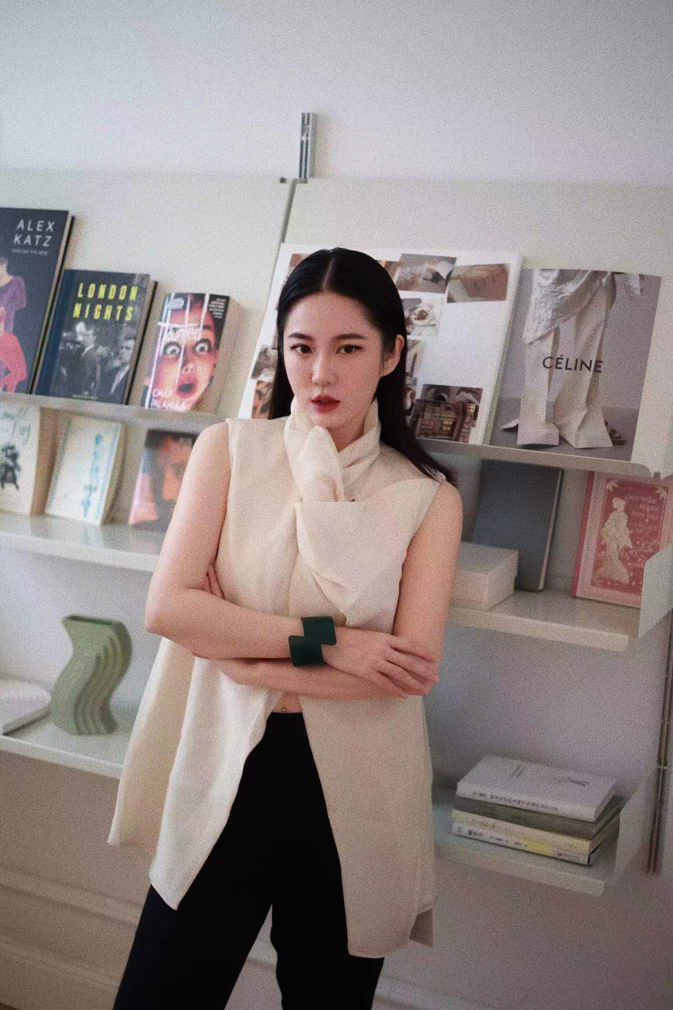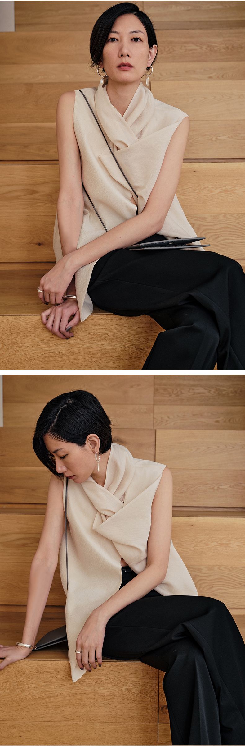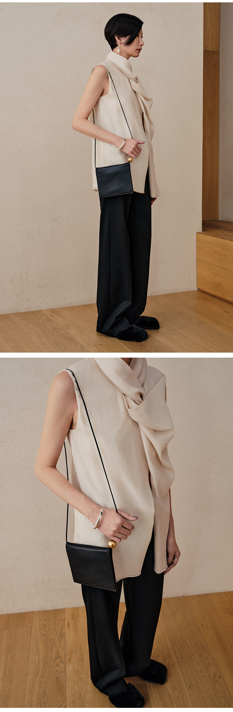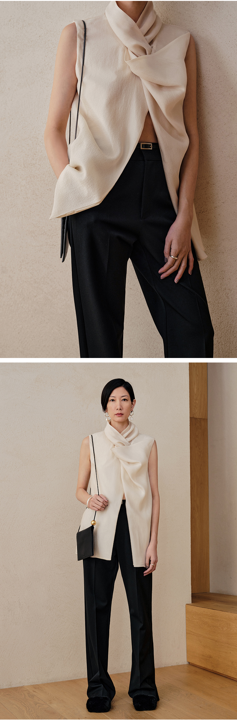 HIDEMI 微褶醋酸立体堆叠领不对称上衣