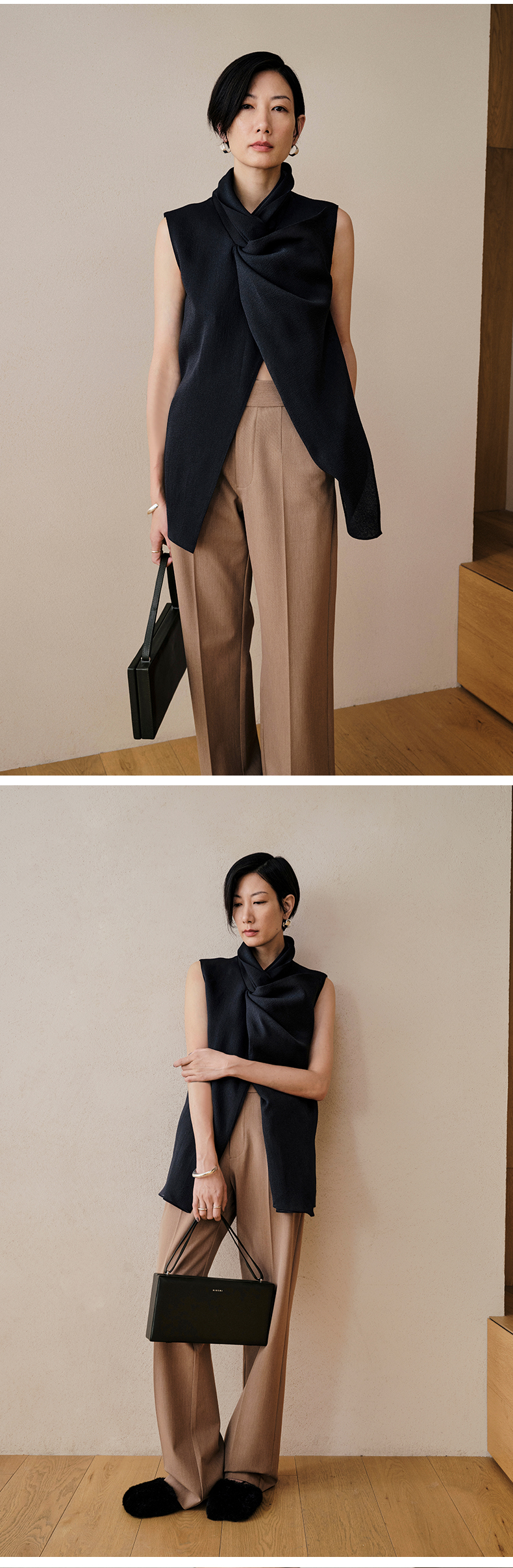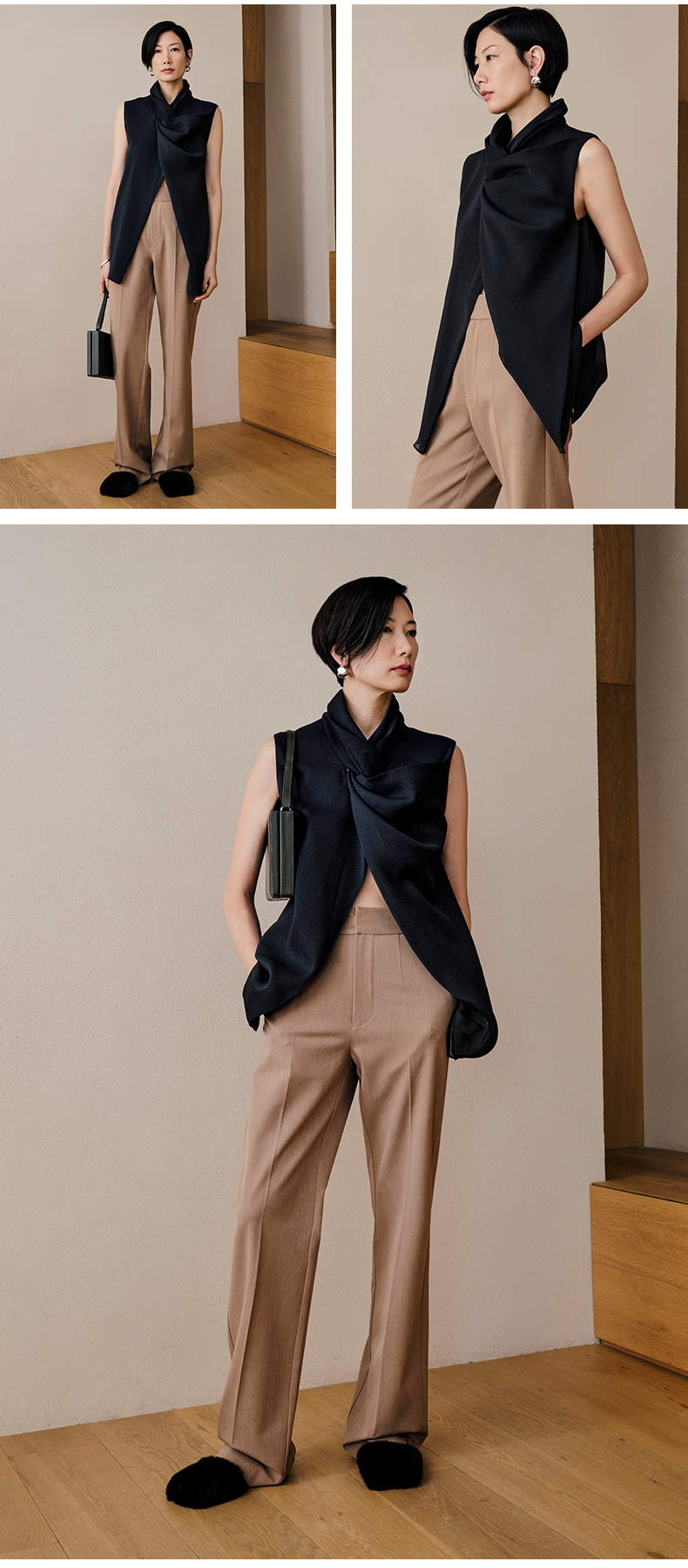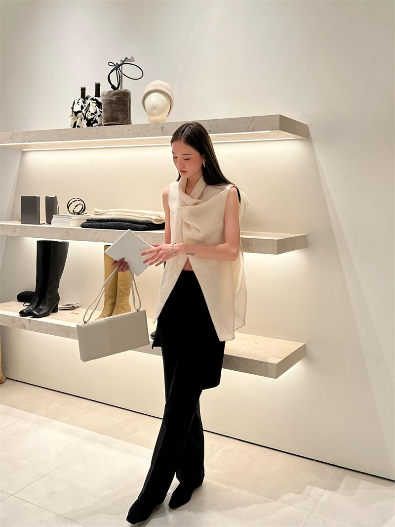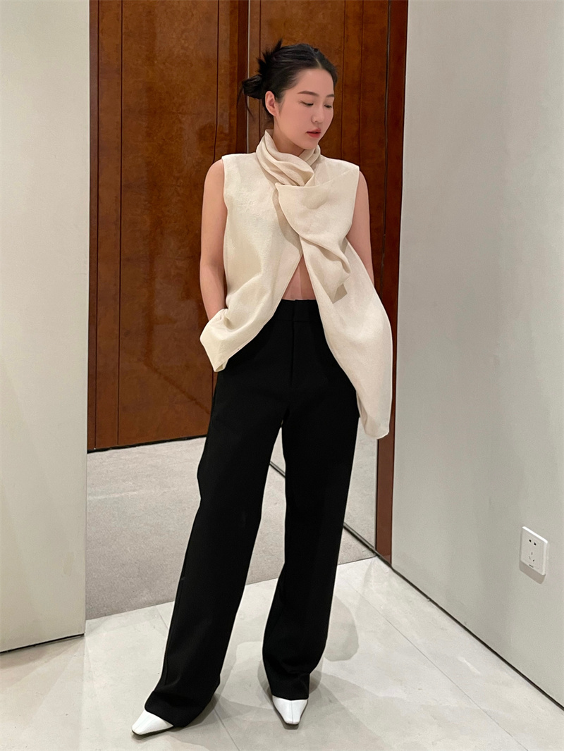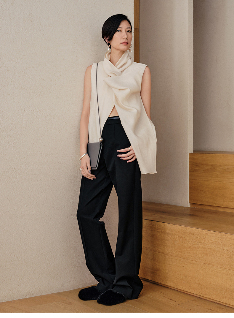 HIDEMI 柔顺感后开衩长裤 白色/炼乳黄/黑色