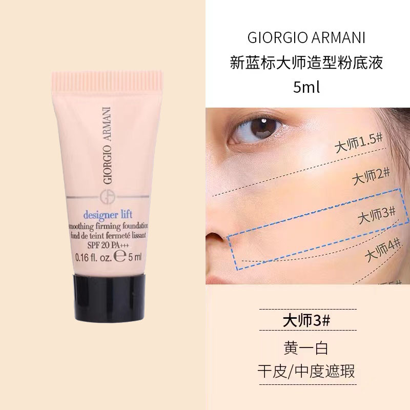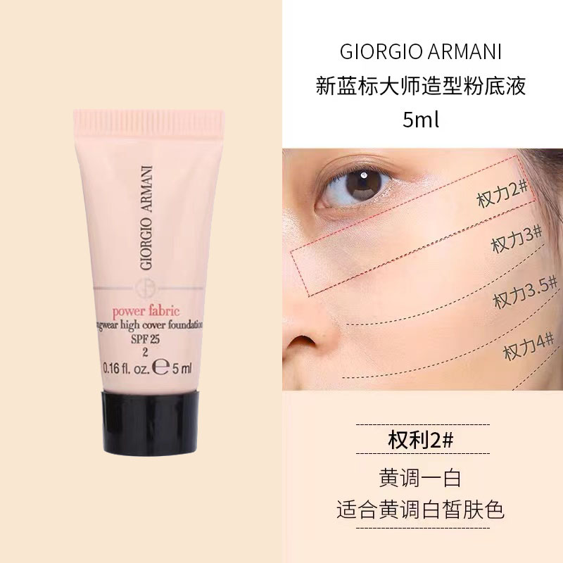 阿玛尼蓝标大师/权利红标粉底液中样5ml 2号3号持妆长效遮瑕油皮干皮救星持久控油遮瑕