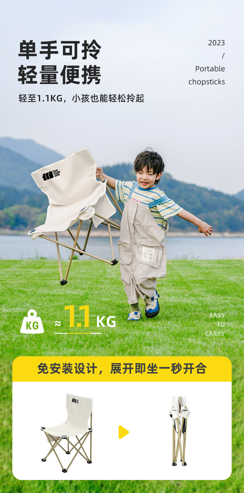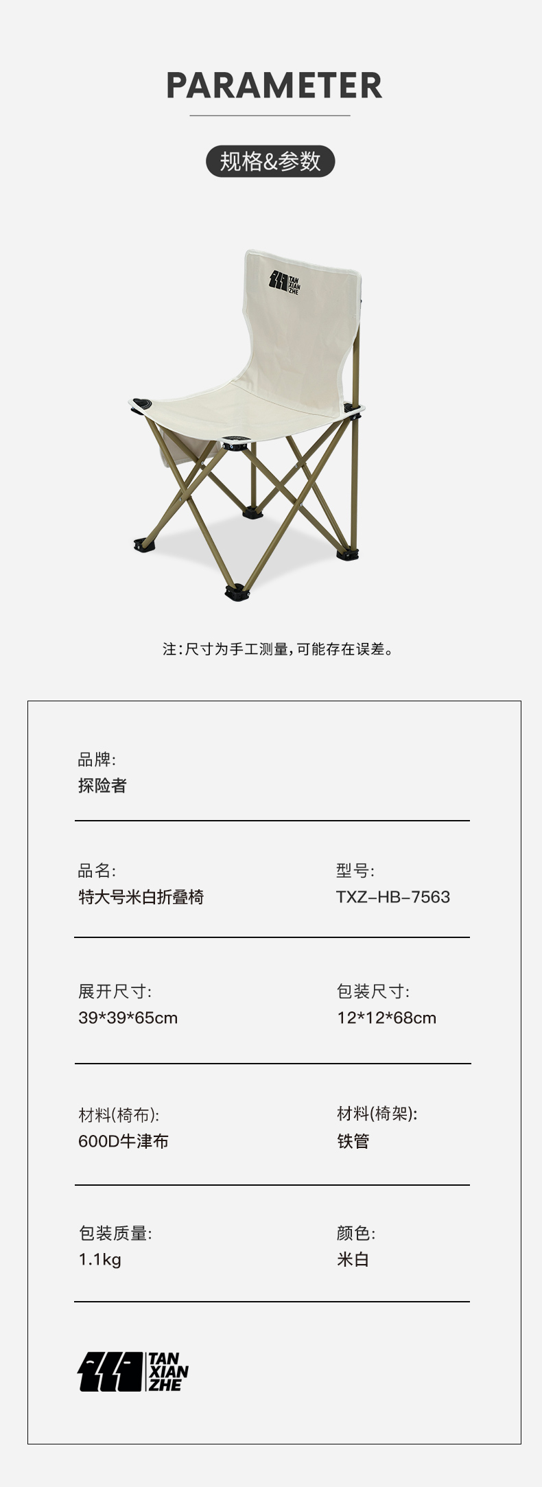 探险者TXZ-HB-7563米白折叠椅【分仓直发,72小时发货,周末节假日不发货】