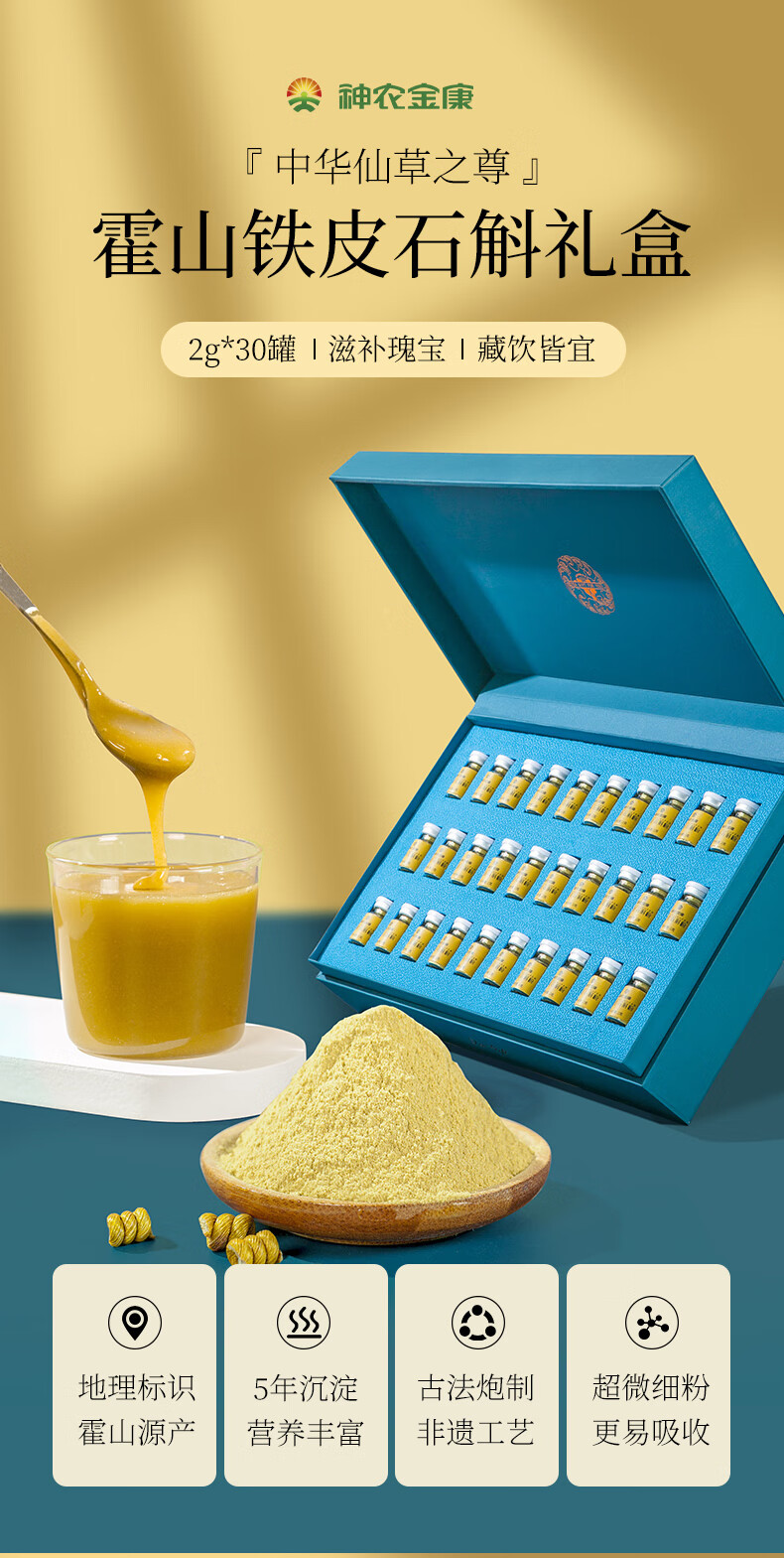 神农金康 铁皮石斛粉60克 原生态真滋补 喝护家人健康