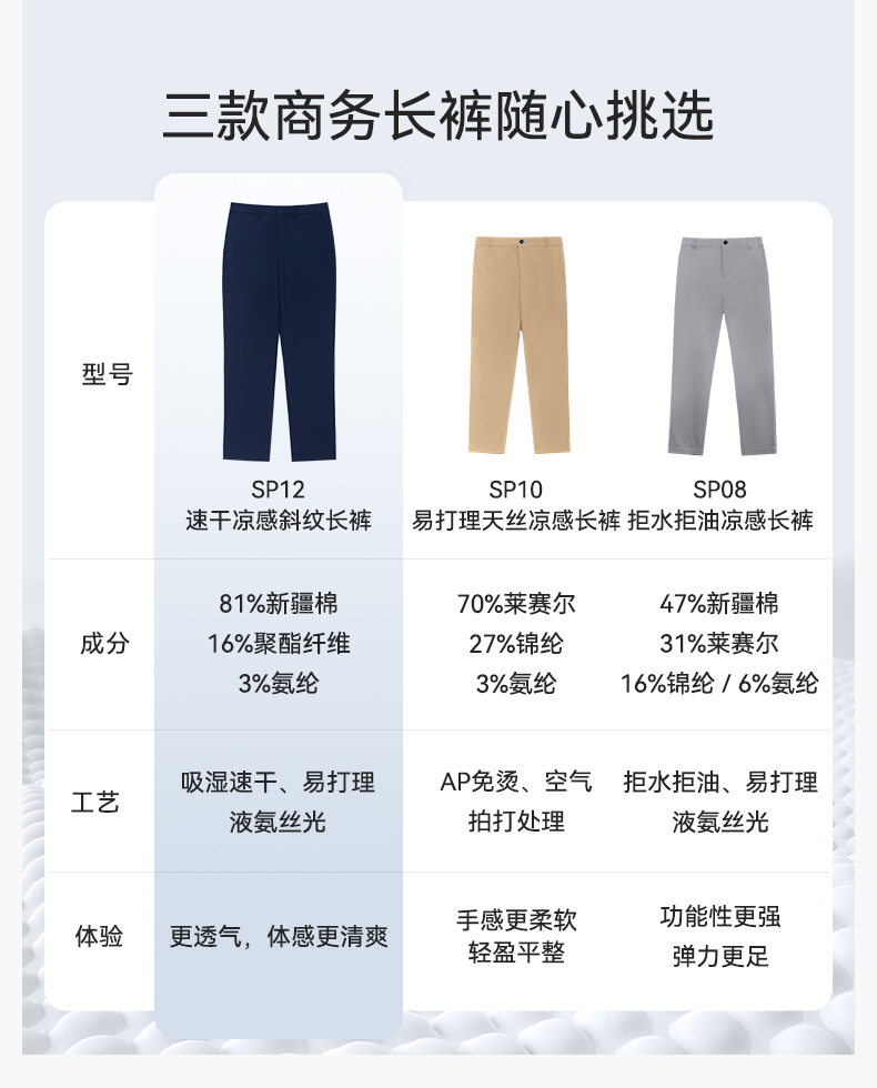 十如仕吸湿速干凉感斜纹商务休闲长裤-SP12