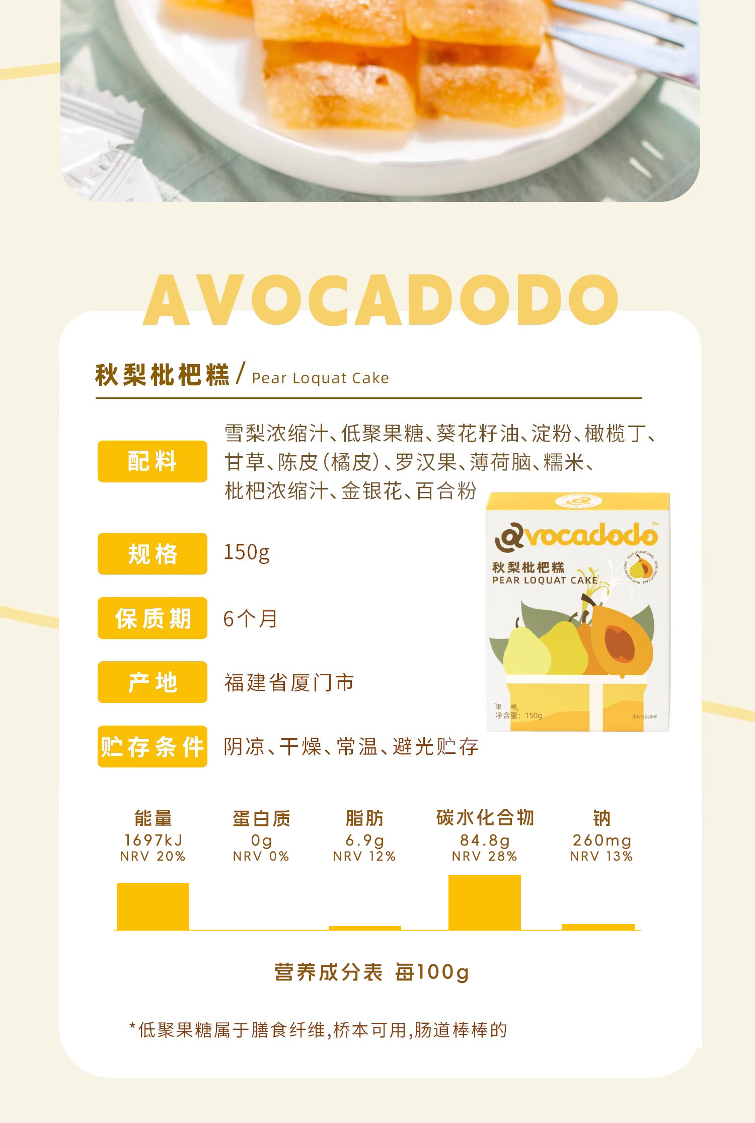 Avocadodo秋梨枇杷糕拍2发3肺嗓糕甘甜小袋不加白糖儿童零食桥本