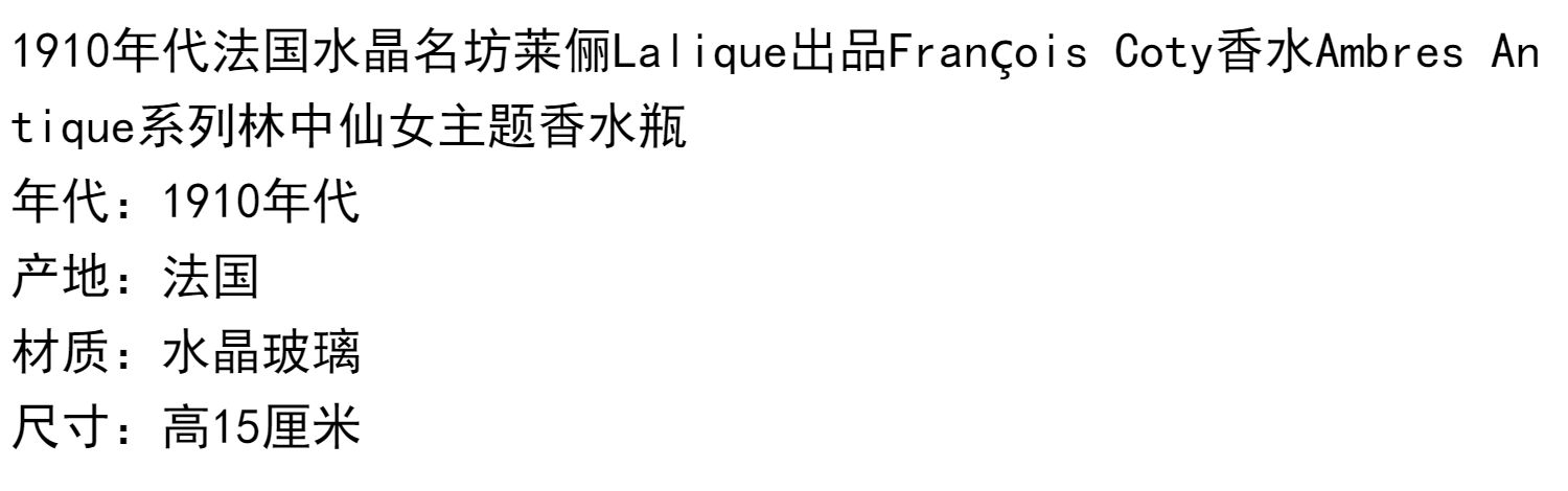 独角鹿西洋古董Lalique莱俪Coty Ambres Antique系列水晶香水瓶