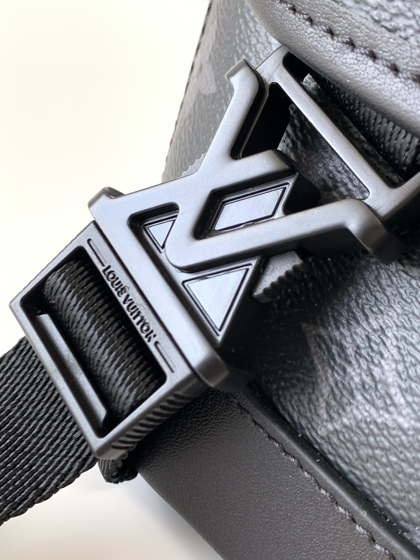 秋冬特惠💰1250 渠道级LV【全钢五金 MB163c01变码芯片】te级LV 全套包装 M12517黑花 本款 Voyager 小号邮差包以Monogram Eclipse帆布塑造舒适便携构型,可轻松容纳平板电脑、充电器和其他日常所需。快拆式搭扣呈现LV字母,可调节肩带实现肩背和斜挎。