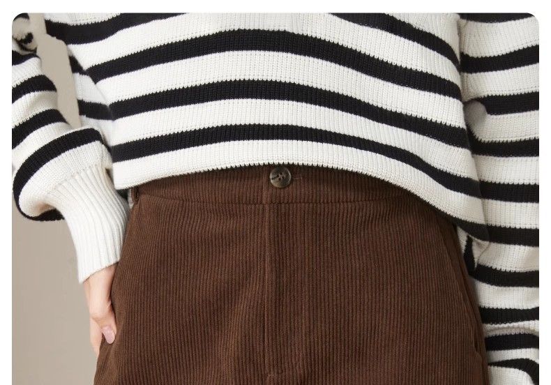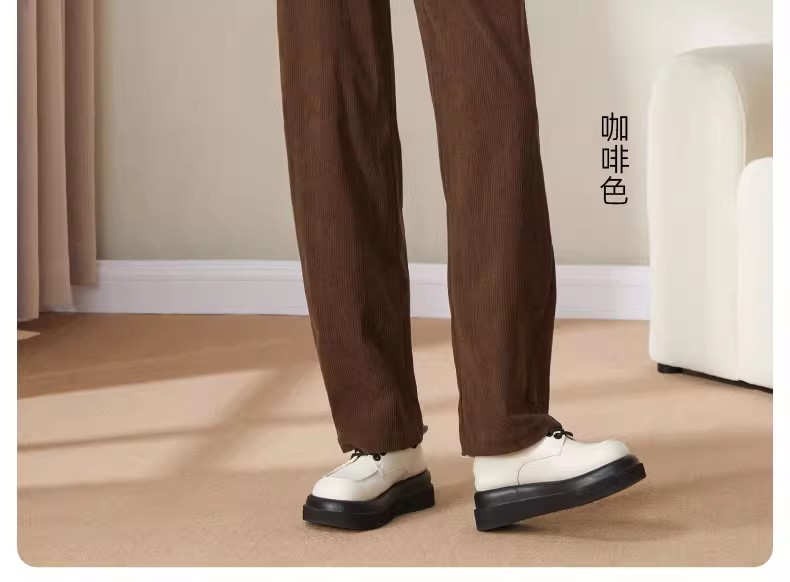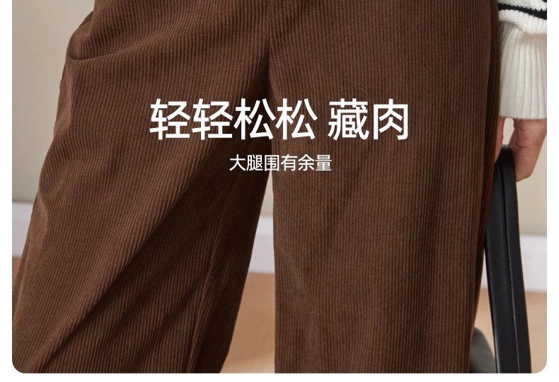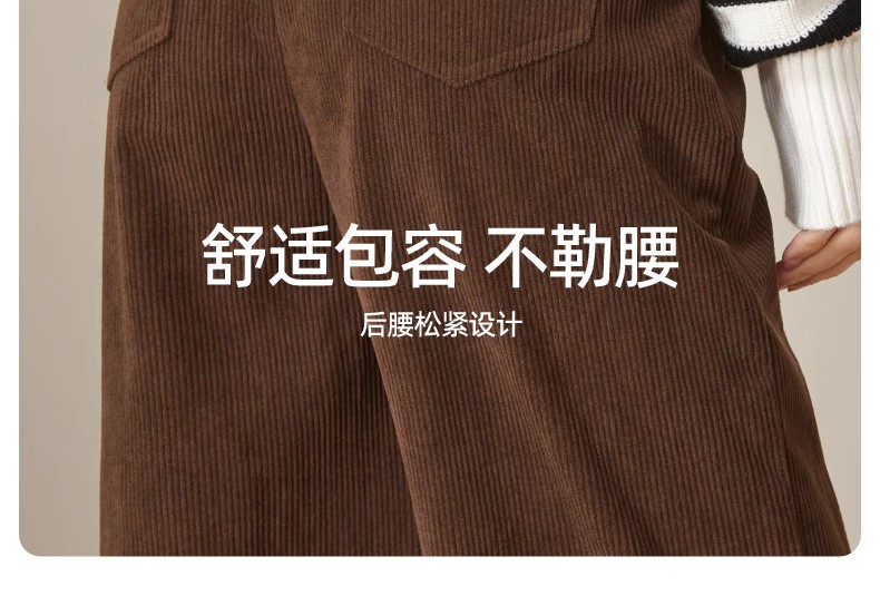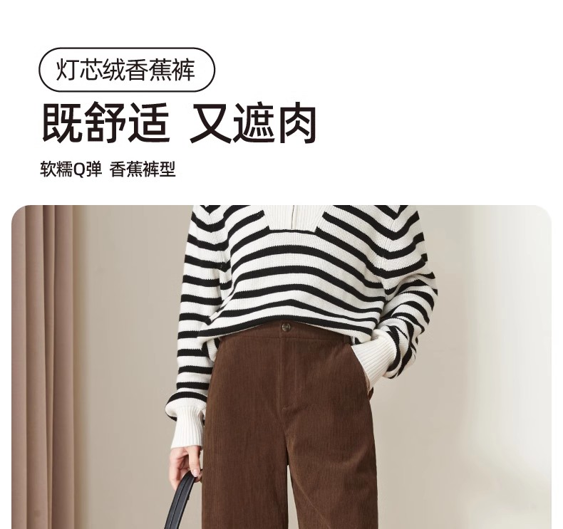 【春新品灯芯绒香蕉裤】逸阳美拉德高腰直筒休闲镰刀咖色裤子0549