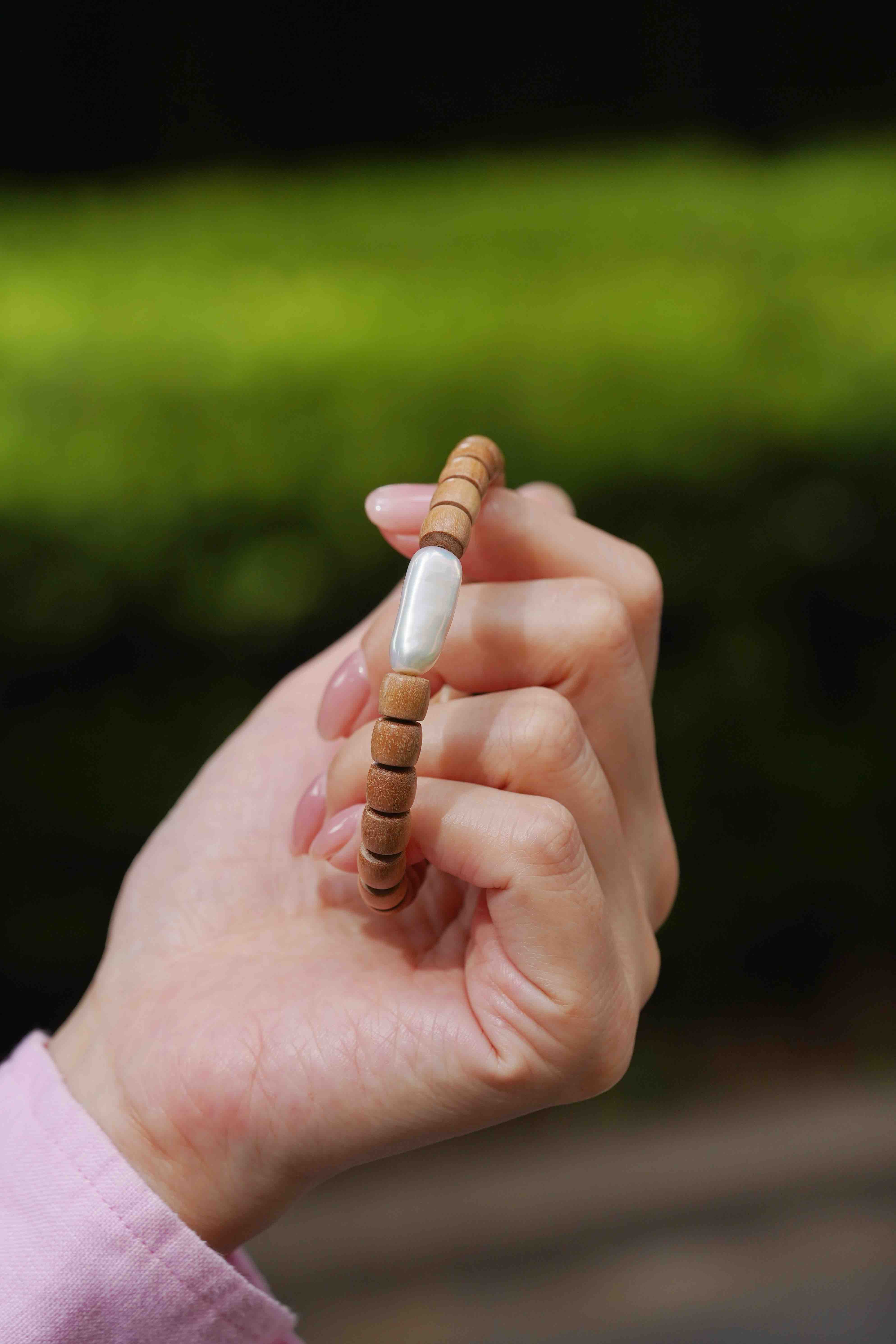简简单单的老山檀直角切,搭配一颗天然珍珠。