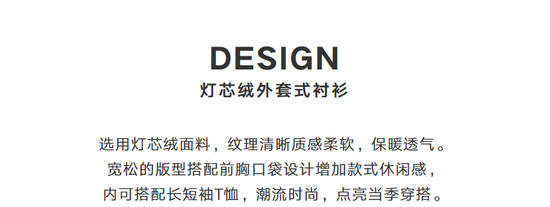 MC |MODE COMMUTER春季灯芯绒口袋宽松男士长袖衬衫外套MCD103009A