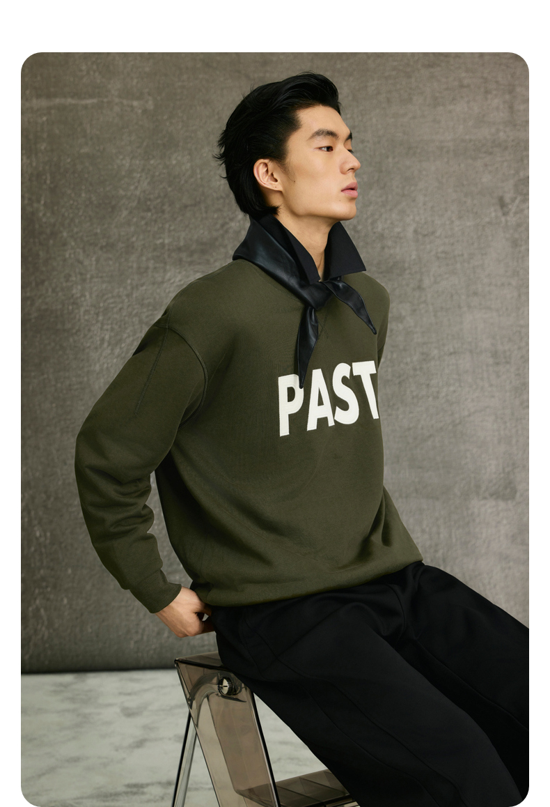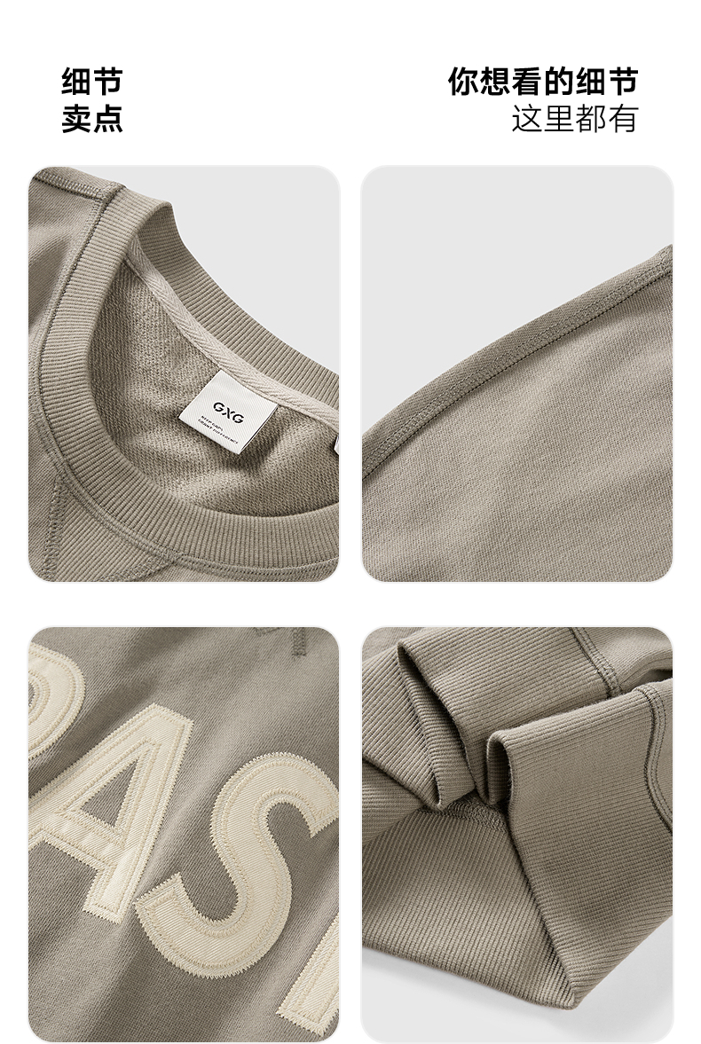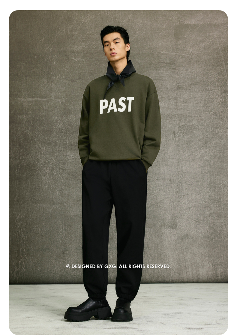 GXG男装 双色圆领卫衣字母印花长袖上衣简约休闲卫衣 春季热卖G25X311012