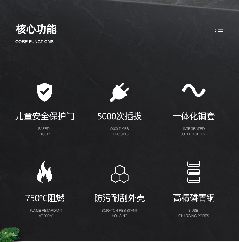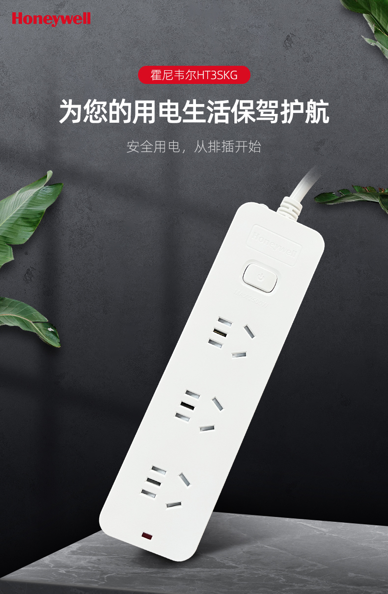 霍尼韦尔总控开关三位五孔延长线插座(1.2M) HT3SKG