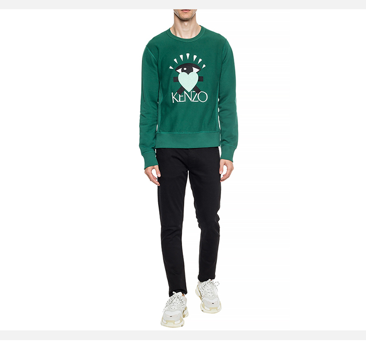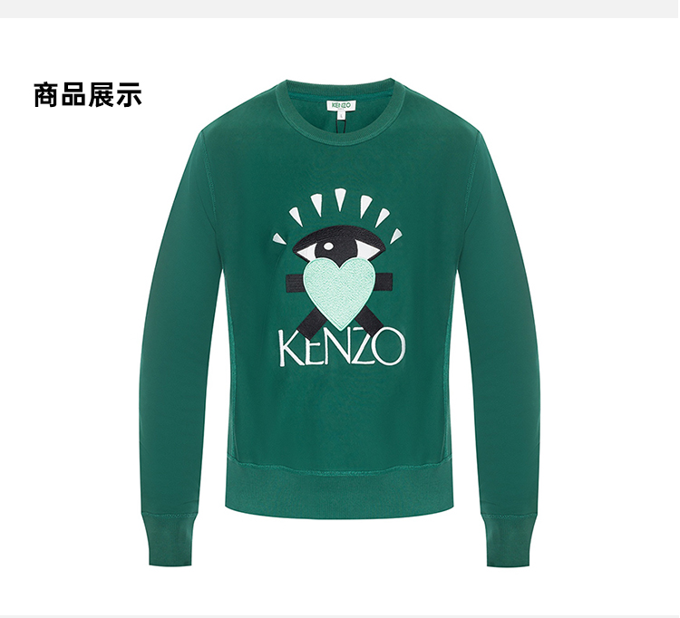 KENZO 高田贤三 男士棉质刺绣眼睛图案圆领运动长袖卫衣 绿色 F965 SW312 4X4 53