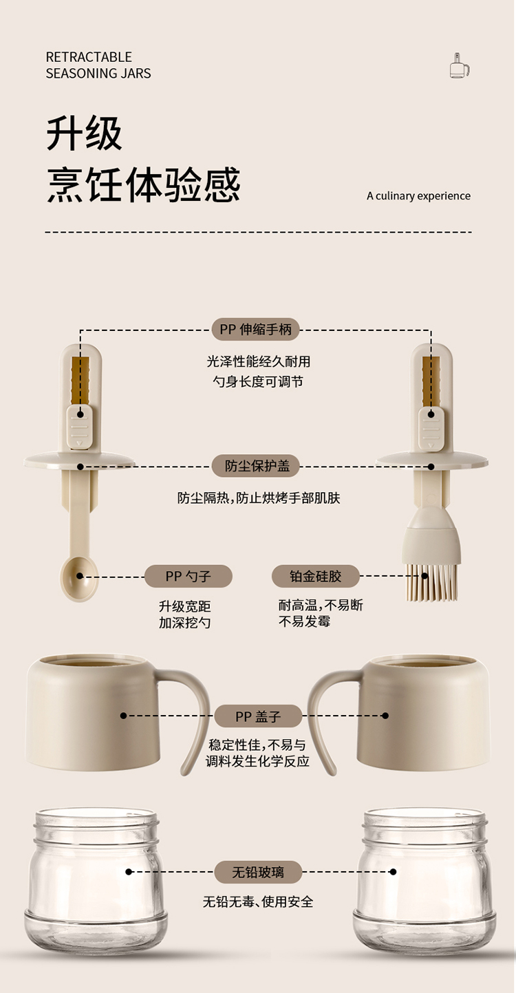 FaSoLa调料罐勺盖一体调料盒厨房调料分装瓶味精密封盐罐调味罐