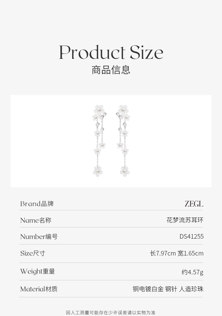 ZEGL设计师花梦系列长款花朵流苏耳环女2023新款爆款耳钉夏天耳饰