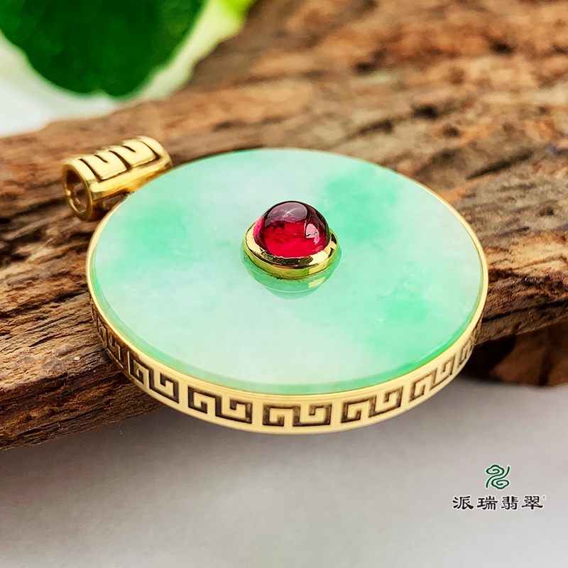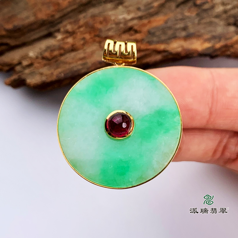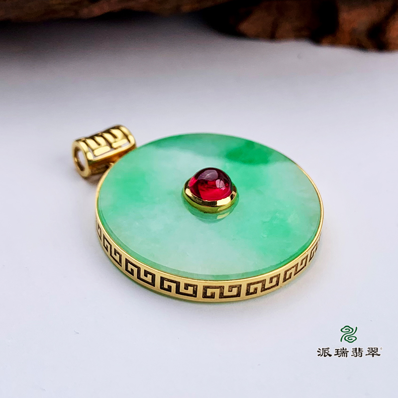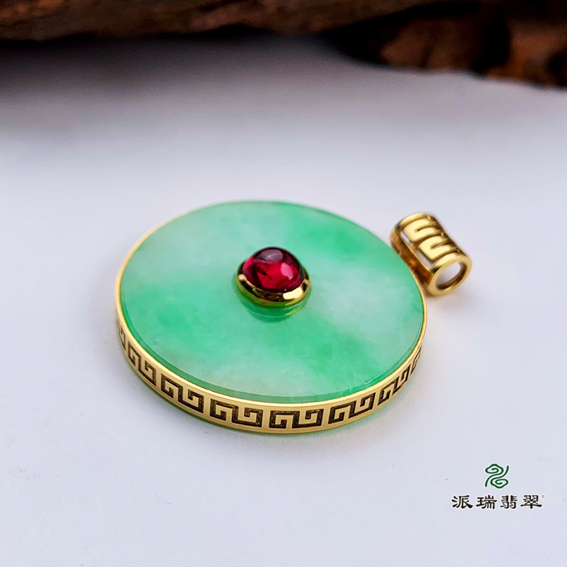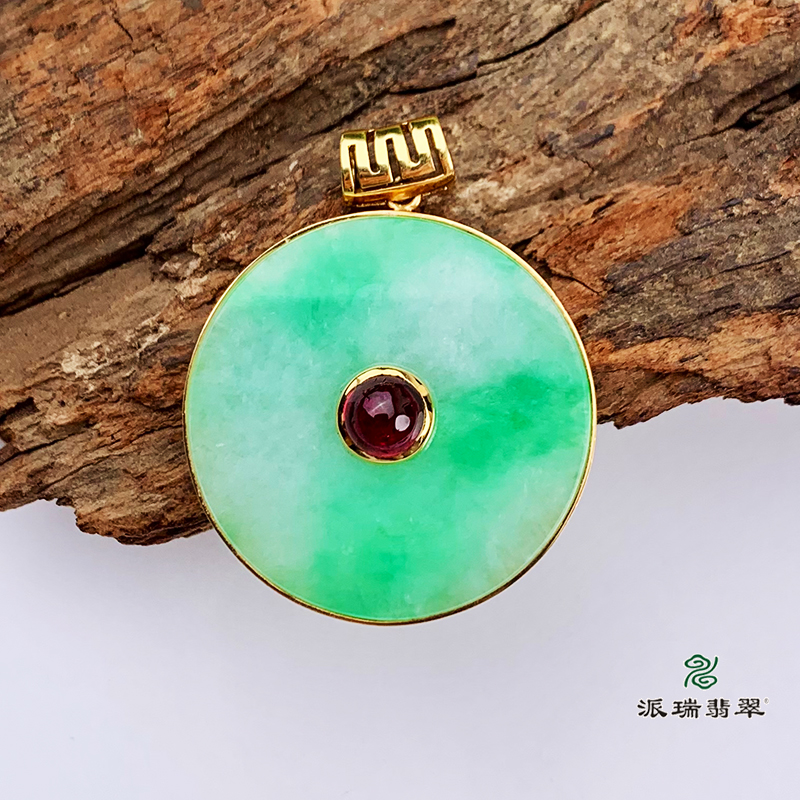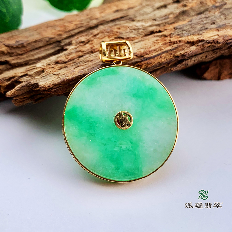 派瑞翡翠 18k金翡翠吊坠 糯种 绿色