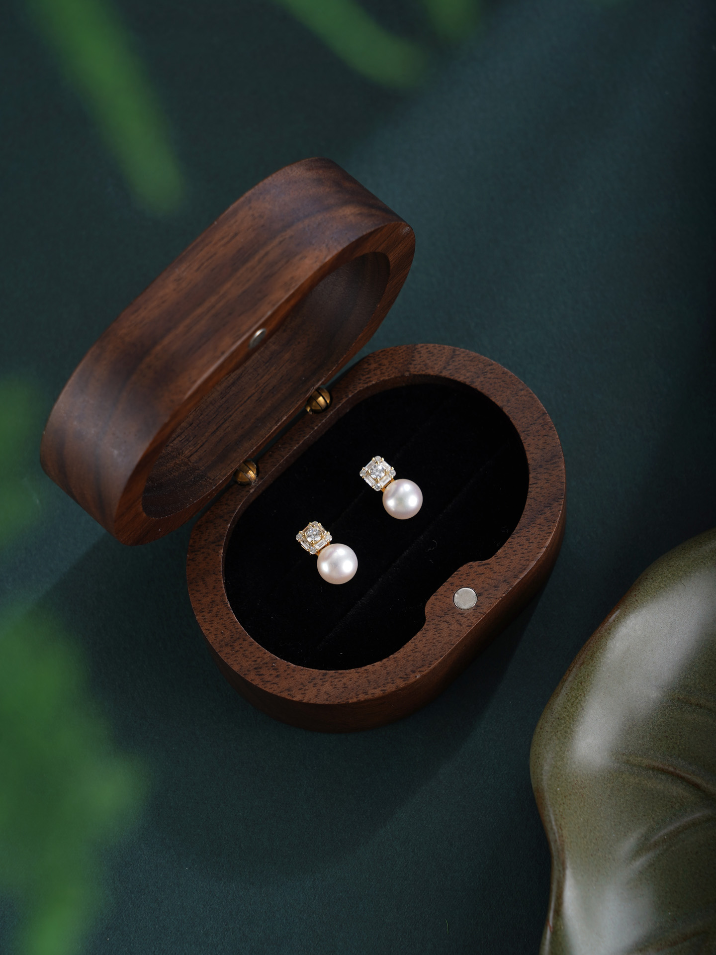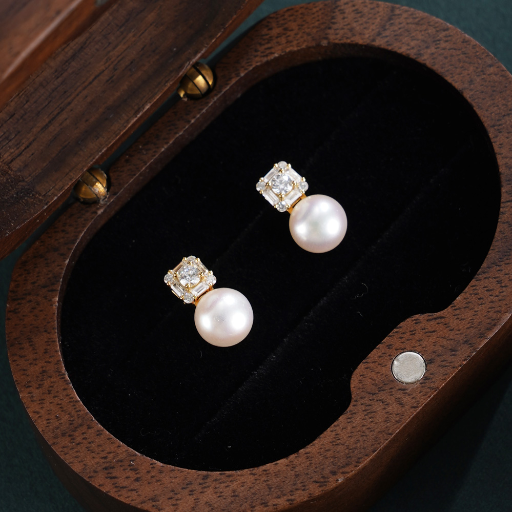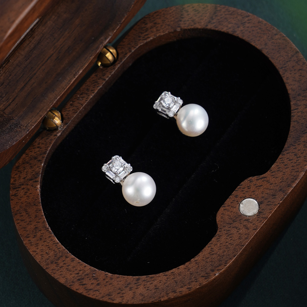 子佩集【方圆栖光】银S925珍珠惜王妃耳钉【E4892】双色方块2602