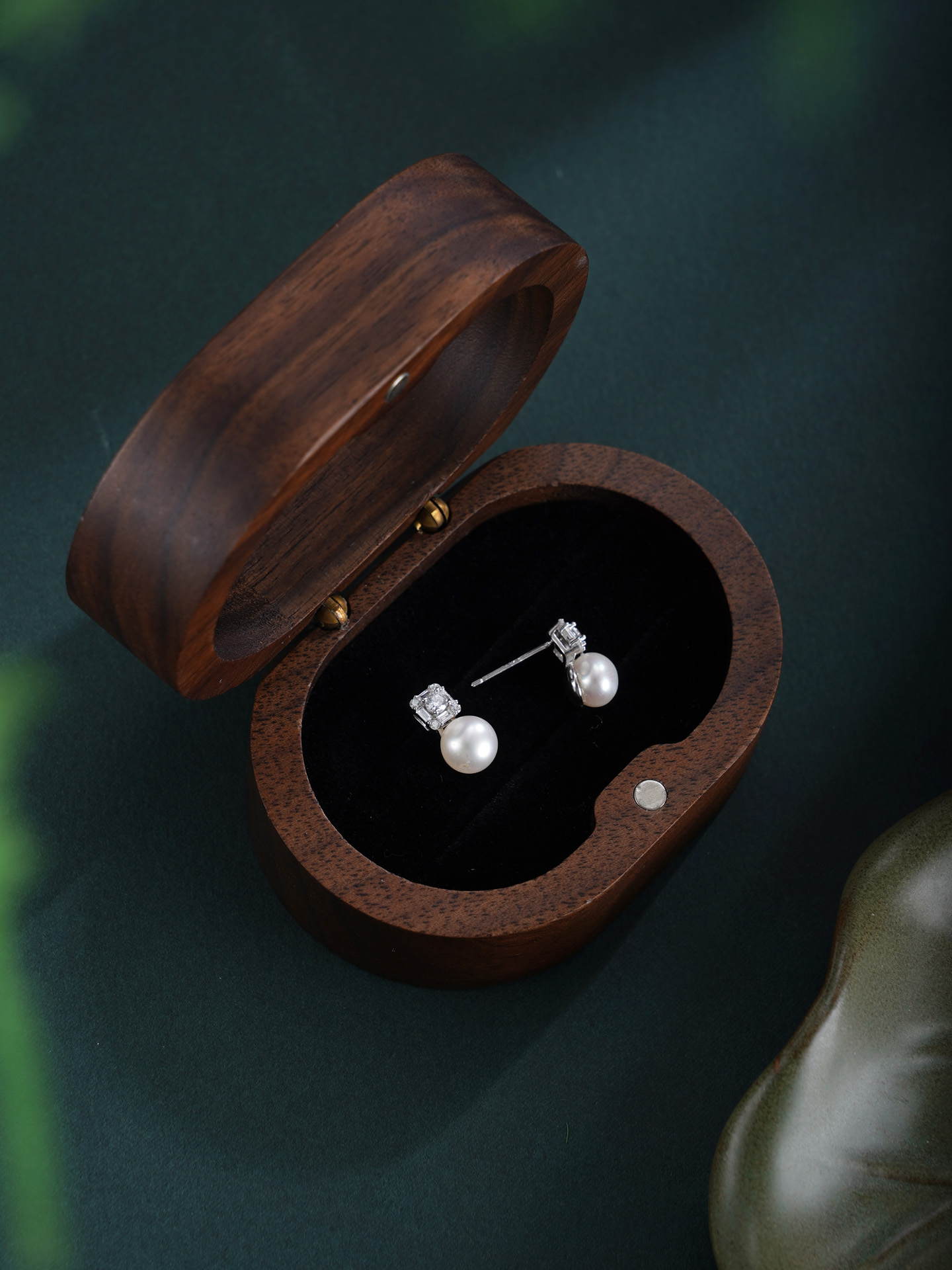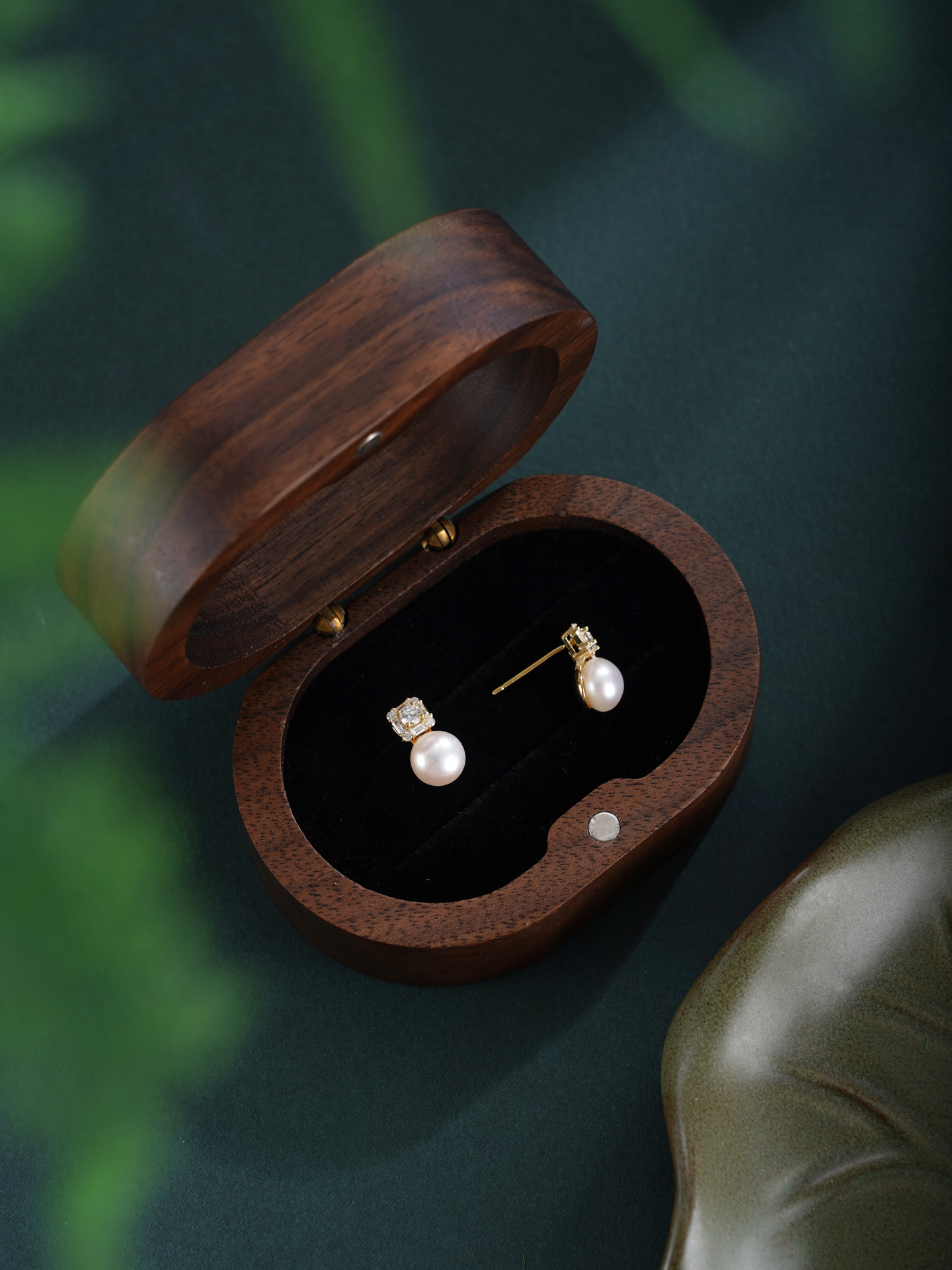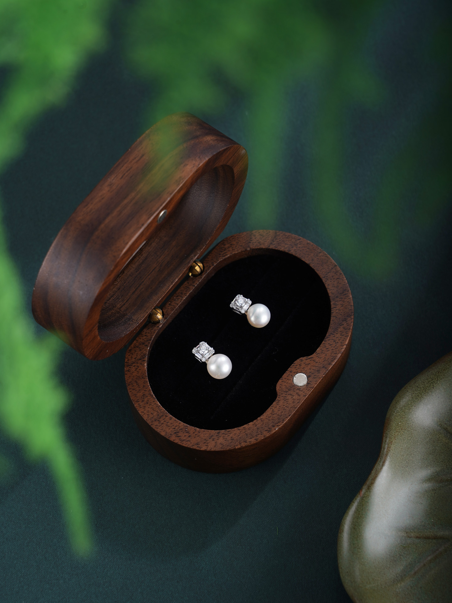 子佩集【方圆栖光】银S925珍珠惜王妃耳钉【E4892】双色方块2602