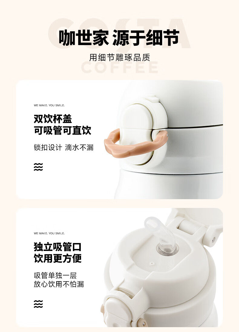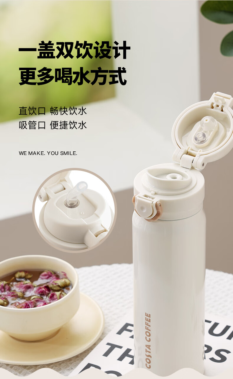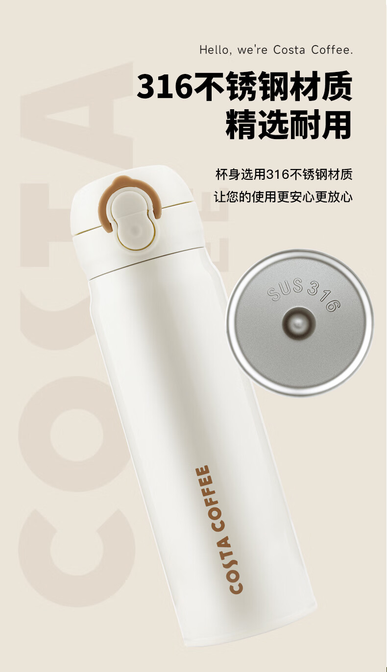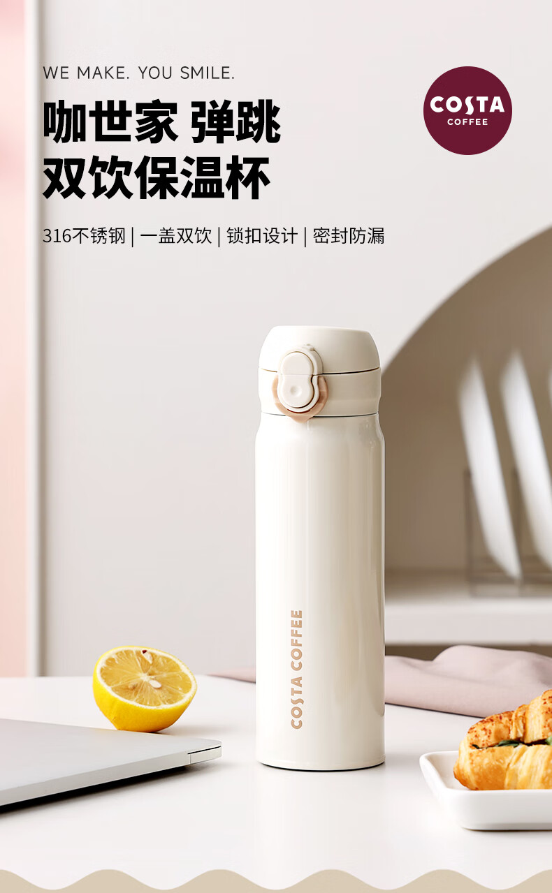 【分仓直发包邮】Costa咖世家弹跳双饮保温杯—白色COS-2499-480