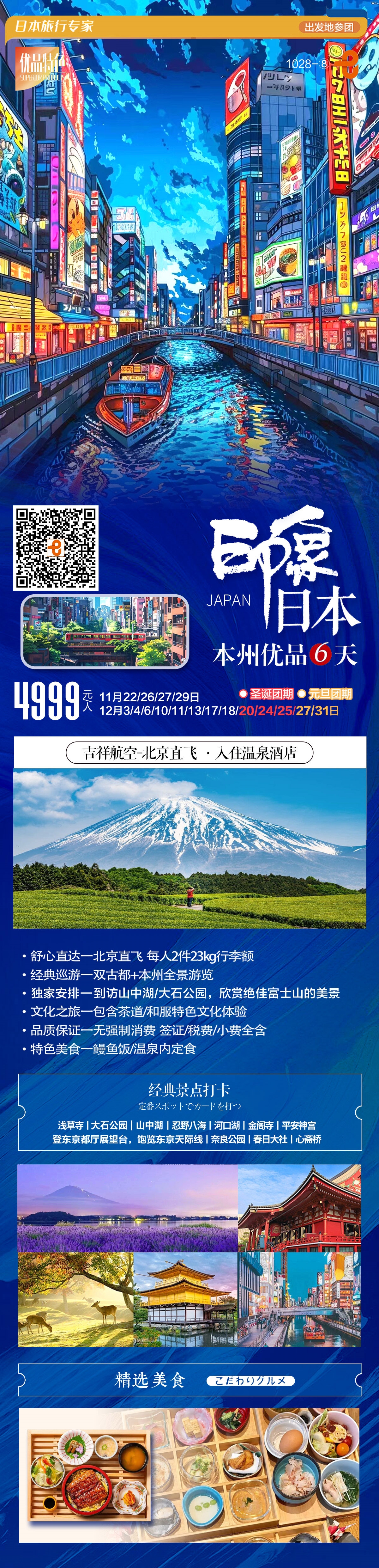 【北京出发】本州优品6日 优选航班北京直飞 全程舒适型酒店住宿
