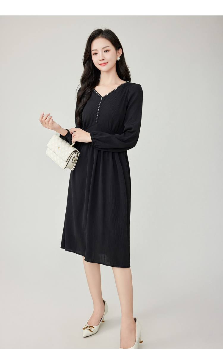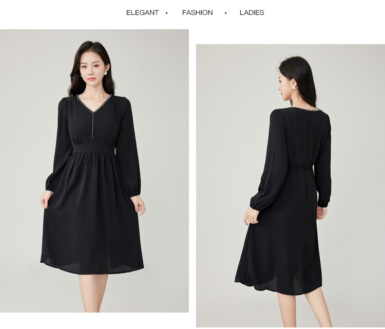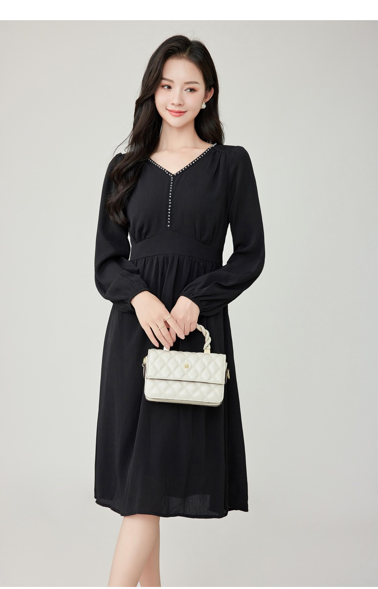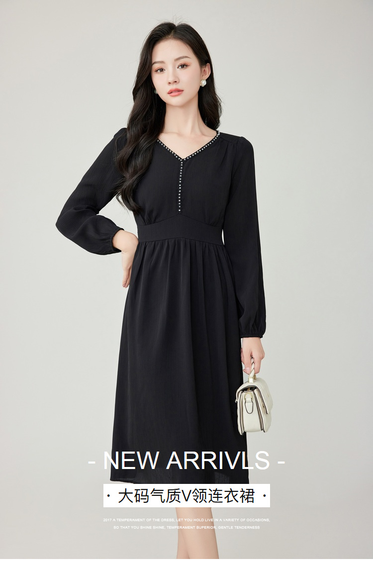 奢姿2025春装新款大码女装灯笼袖花边裙子胖妹妹气质V领连衣裙9933825895