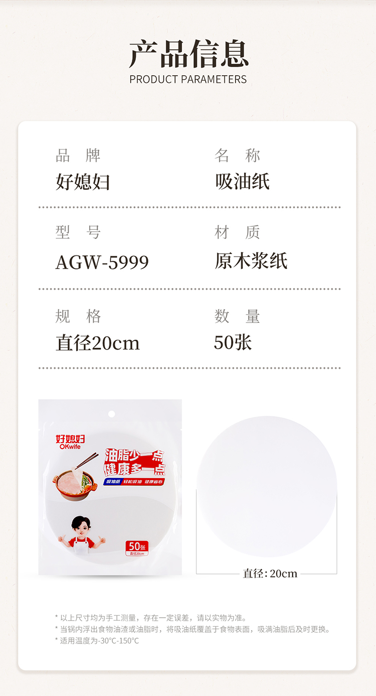【新品】好媳妇一次性吸油纸食物专用家用厨房煲汤油炸食用滤油纸商用食品级