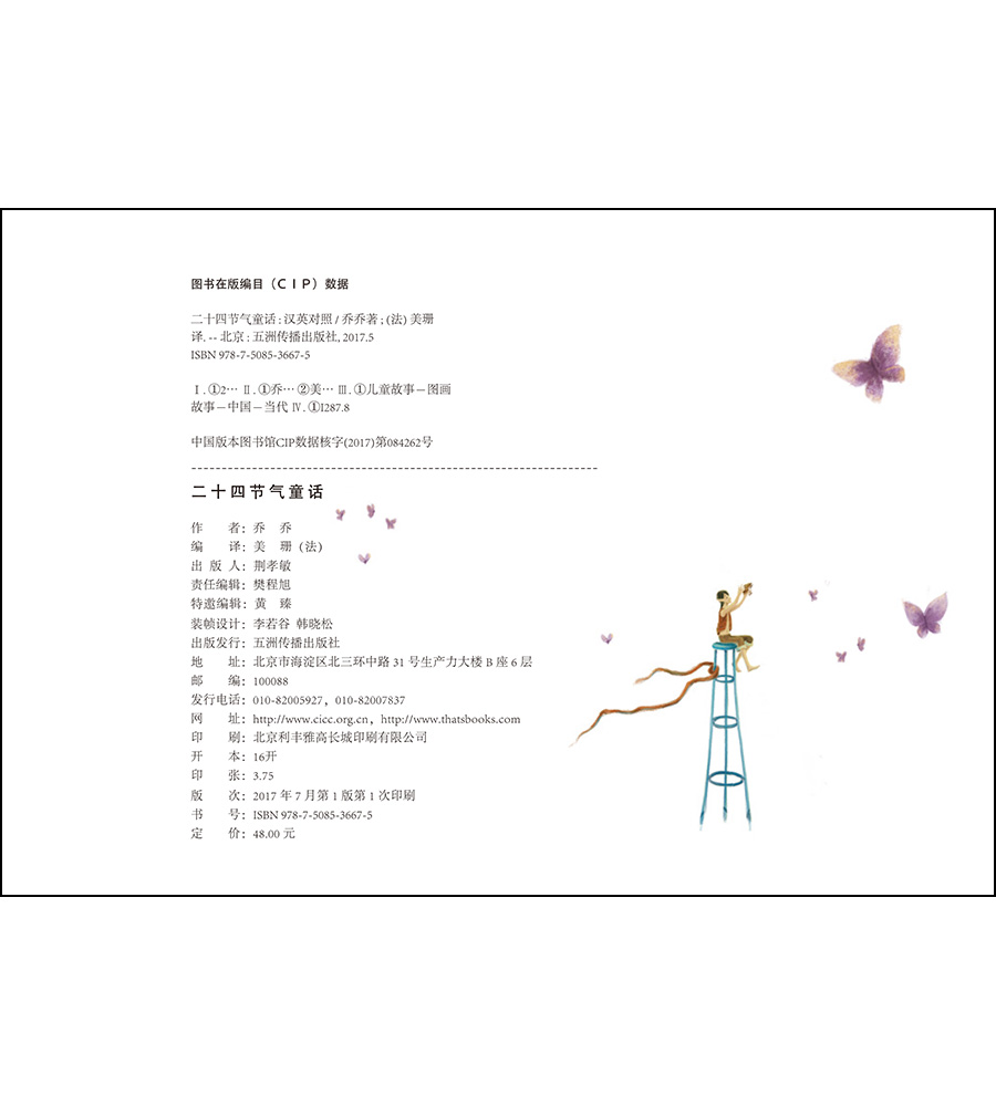 我要感谢五洲传播出版社,他们在第一时间表达了对出版这本《二十四节气童话》汉英双语绘本书的支持。