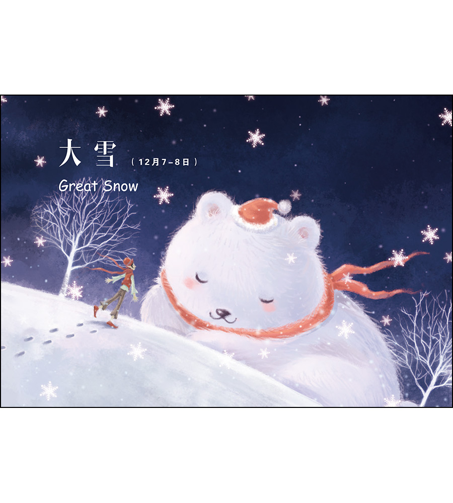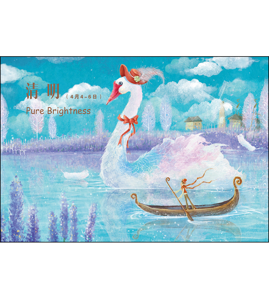 同时,我们觉得有必要把这套二十四节气插画明信片制作成汉英双语的童话绘本书,让全世界的人们可以通过阅读这本充满童趣又融合中西画风的绘本,感受到中国优秀的传统文化。
