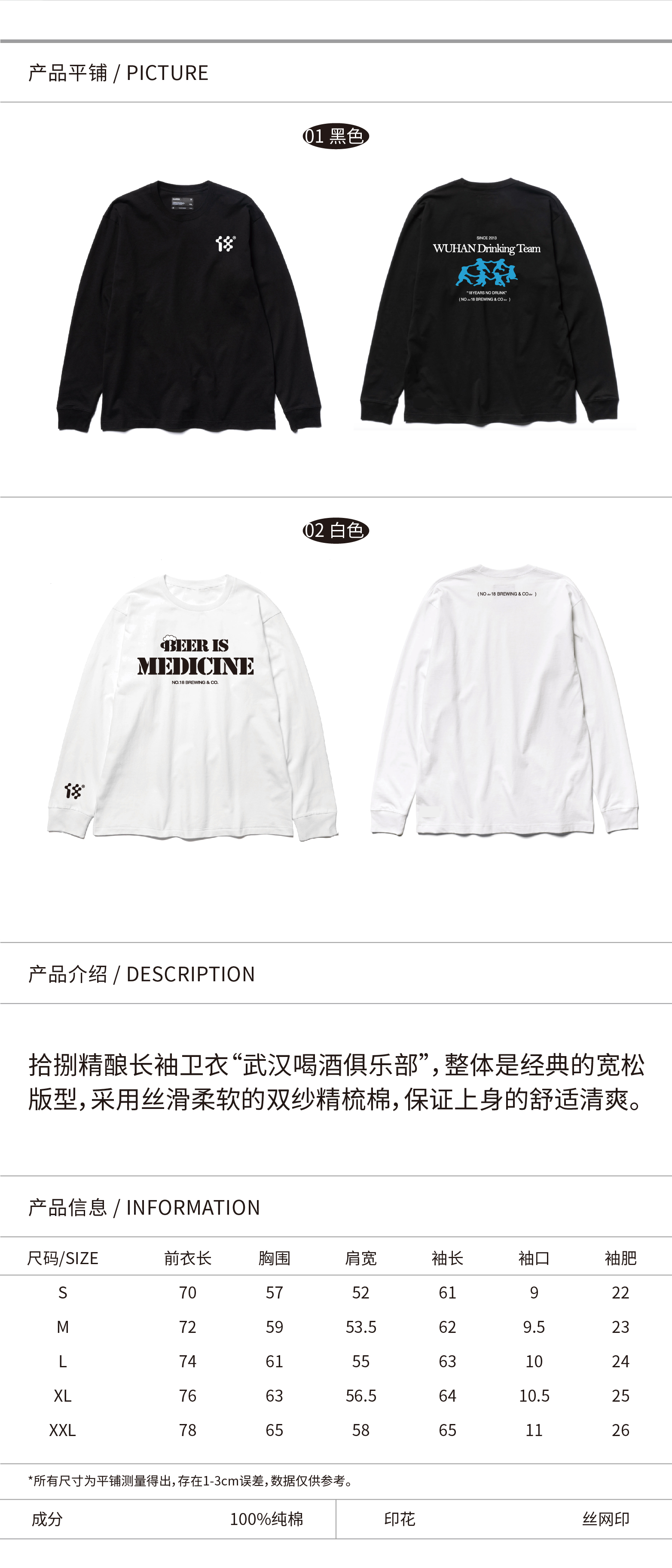 【18周边商店】武汉喝酒俱乐部长袖T恤 黑/白两色
