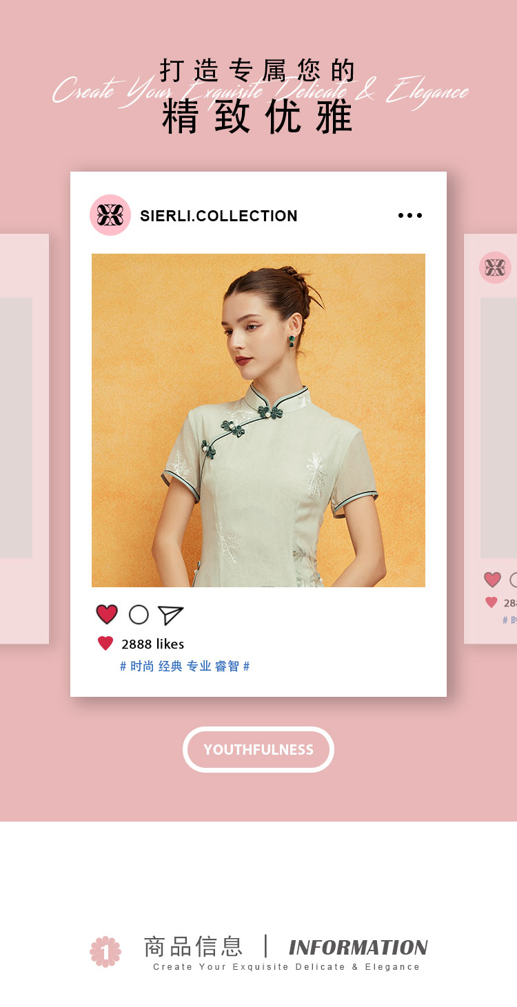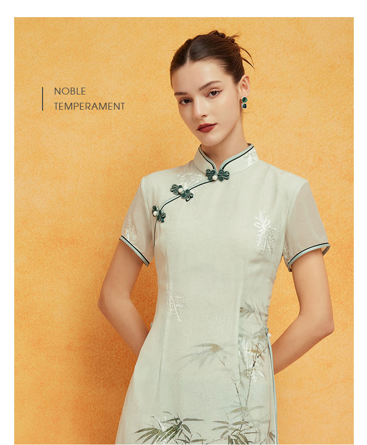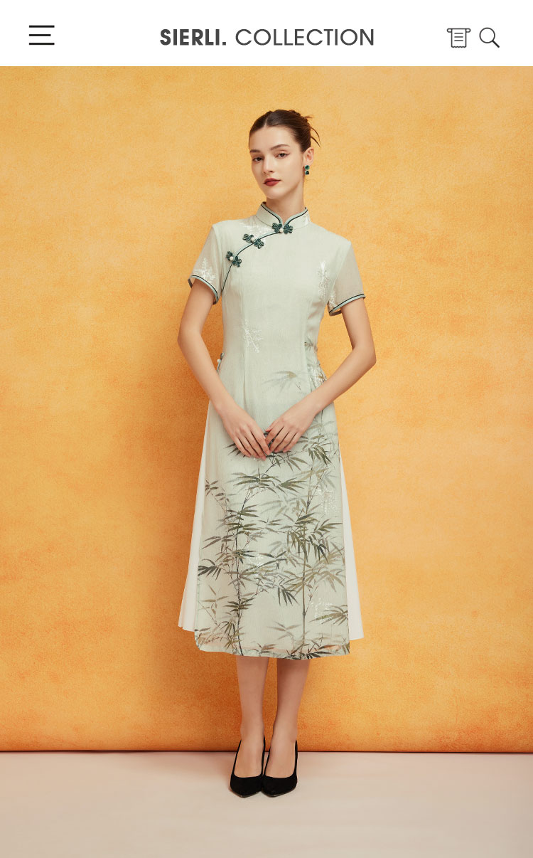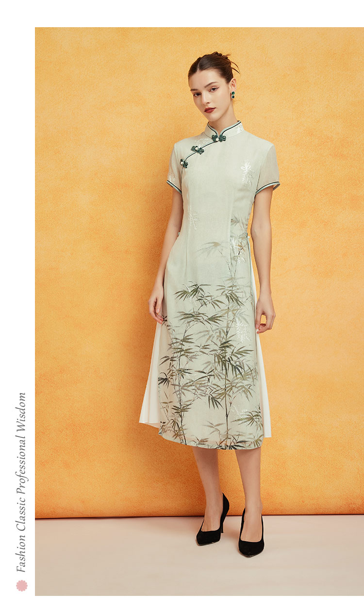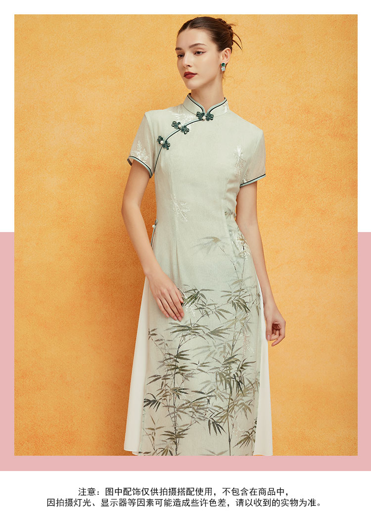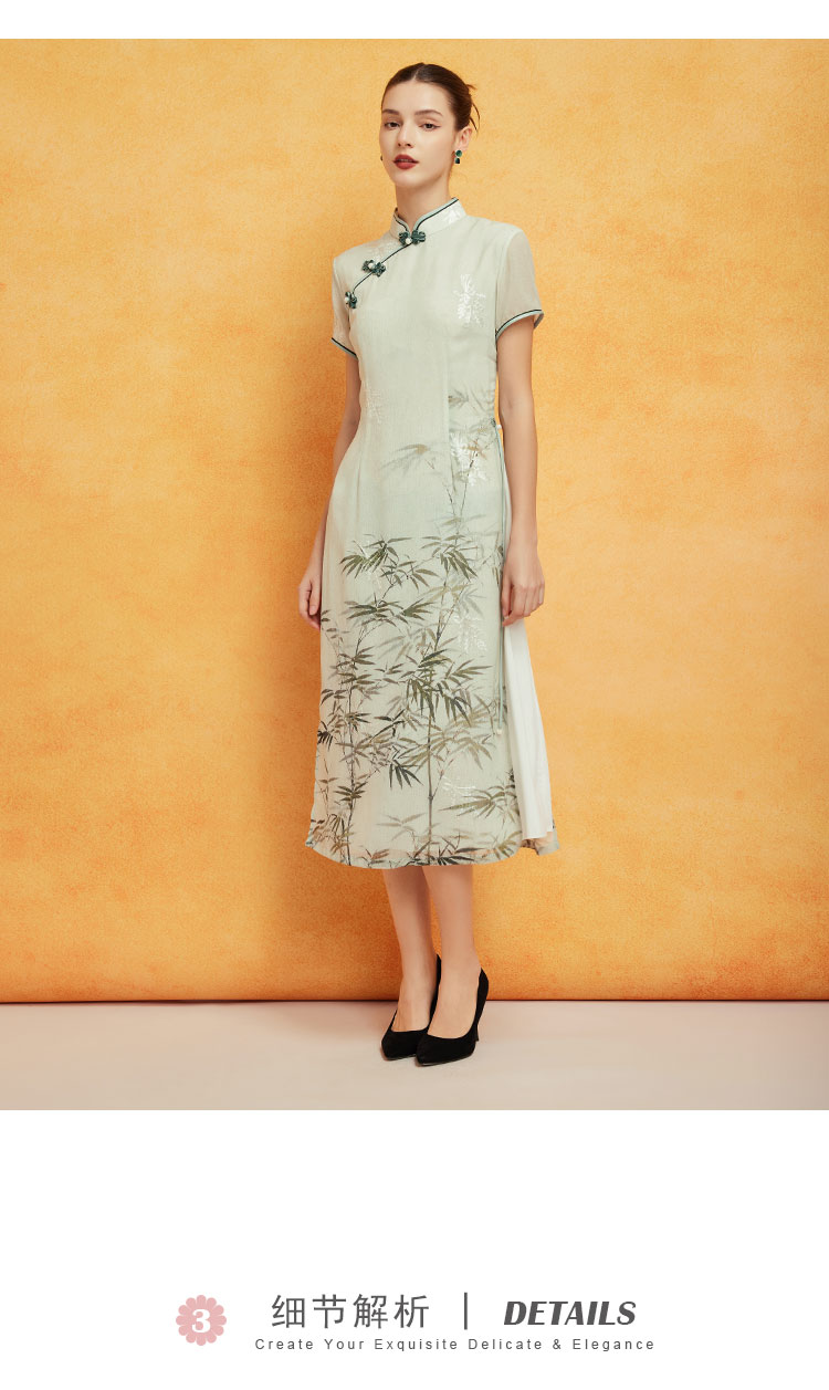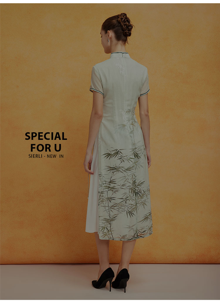 PF8H4斯尔丽2024新款改良旗袍奥黛款双层收腰放摆气质版定位花连衣裙