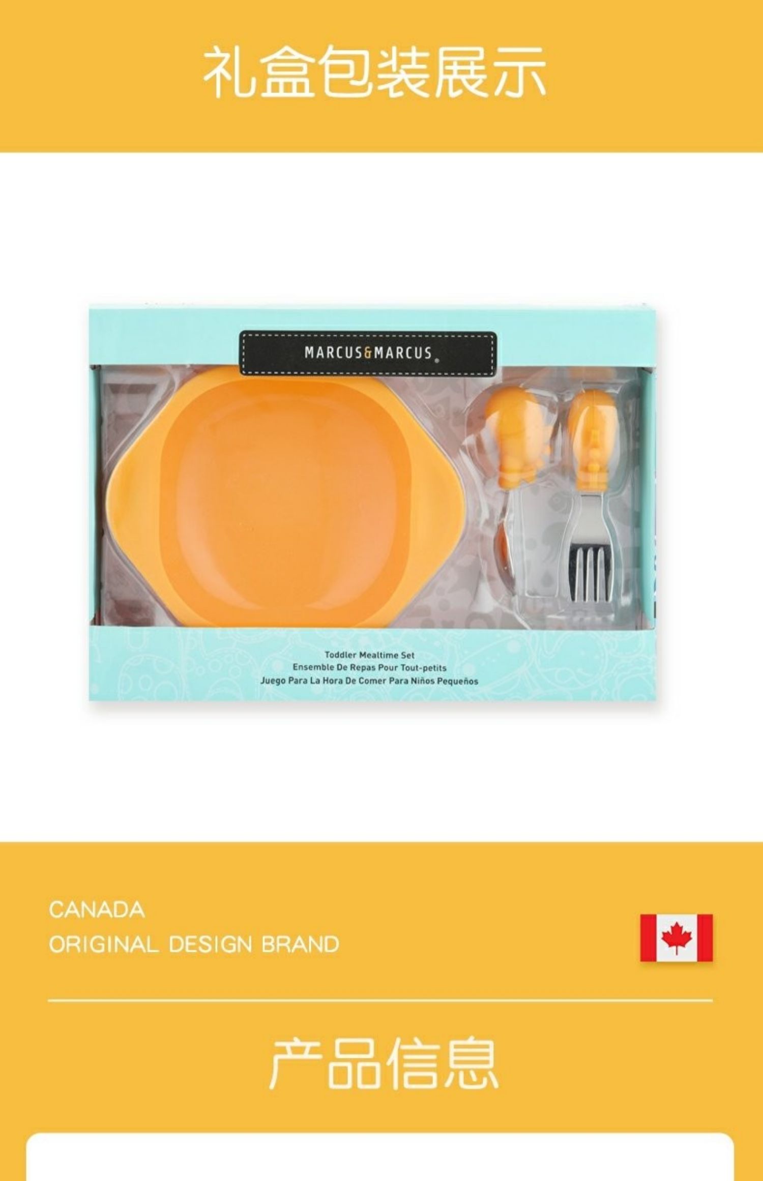 Marcus&Marcus 马库狮婴儿童宝宝碗叉勺碗套装不锈钢勺叉辅食碗防摔训练餐具