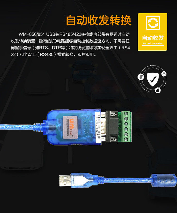 USB转RS485/RS422转换器/PL2303+SP485双芯片/WM-850进口芯片 加密屏蔽编织 抗干扰 支持Win10 系统